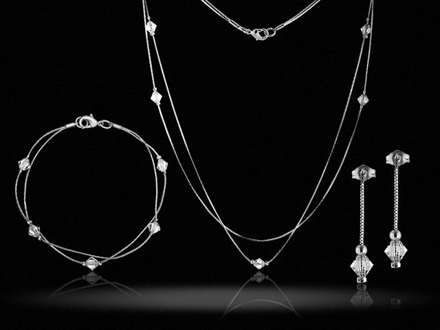 Комплект полностью выполнен изсеребра 925 пробы в хрустале.