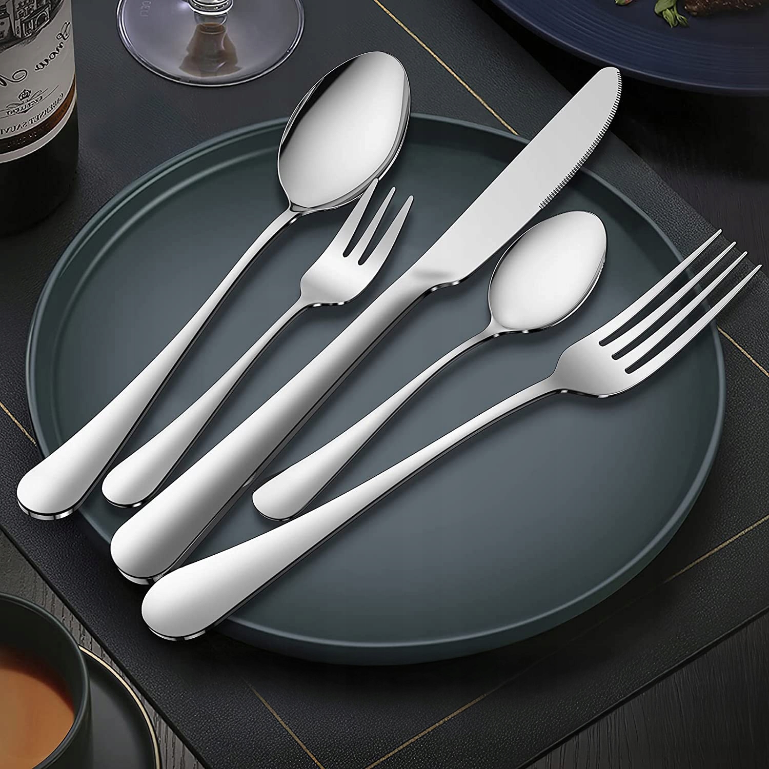 ✔️ ПОЛНЫЙ НАБОР ИЗ 24 ЭЛЕМЕНТОВ - Вы получаете все в одной коробке: 6 ножей, 6 вилок, 6 столовых ложек, 6 чайных ложек и 6 десертных вилок. Готовый набор для всей семьи или для вечеринки.