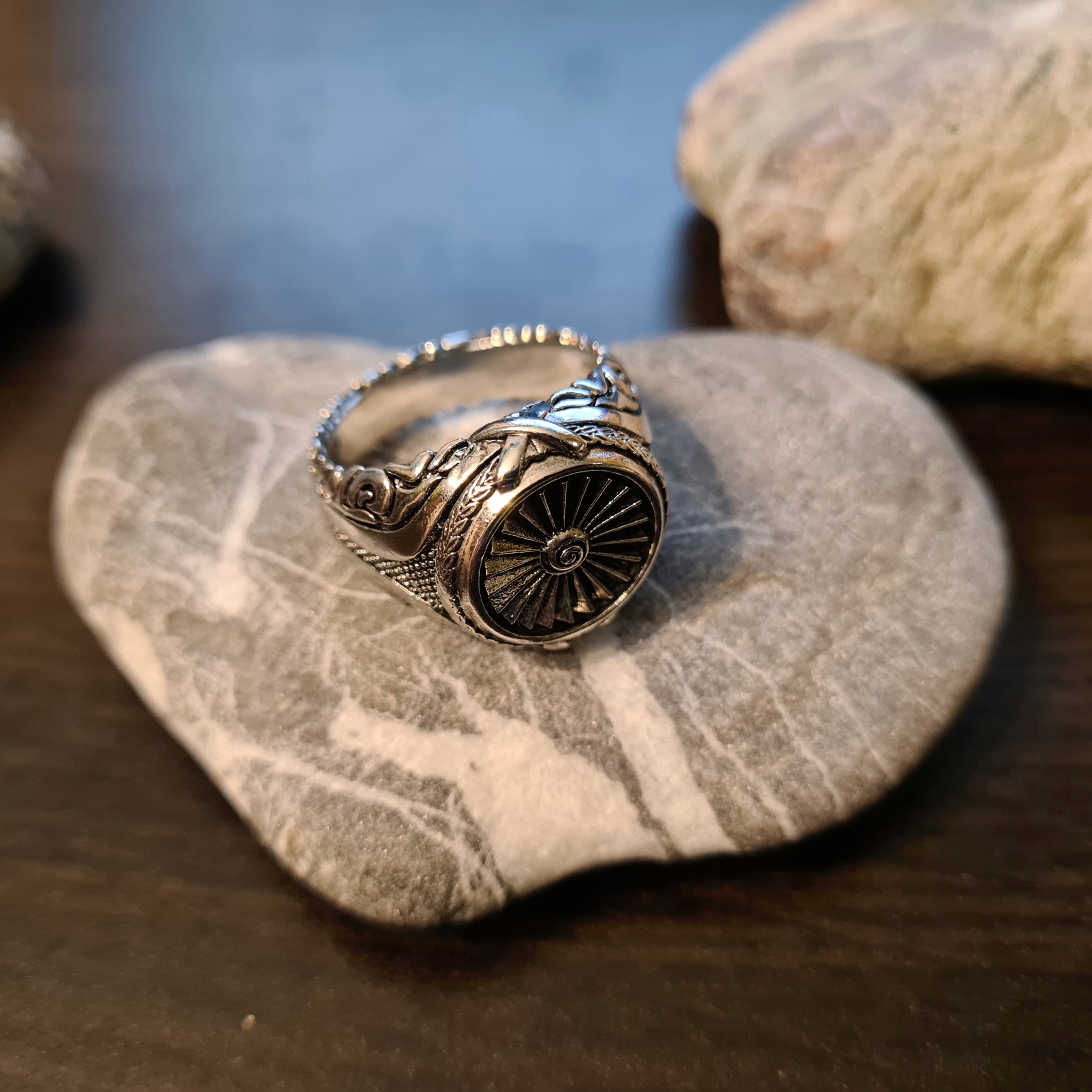 Красивое кольцо с печаткой в виде реактивного двигателя