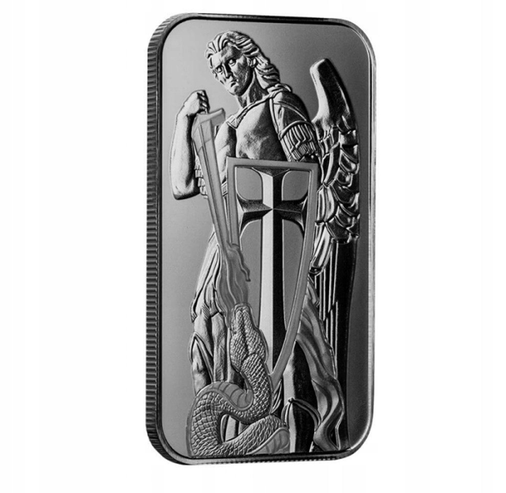 Лейтмотивом этого серебряного слитка является Архангел Михаил, тот, кого обычно считают ангелом, ответственным за защиту, и, следовательно, самым могущественным среди ангелов.