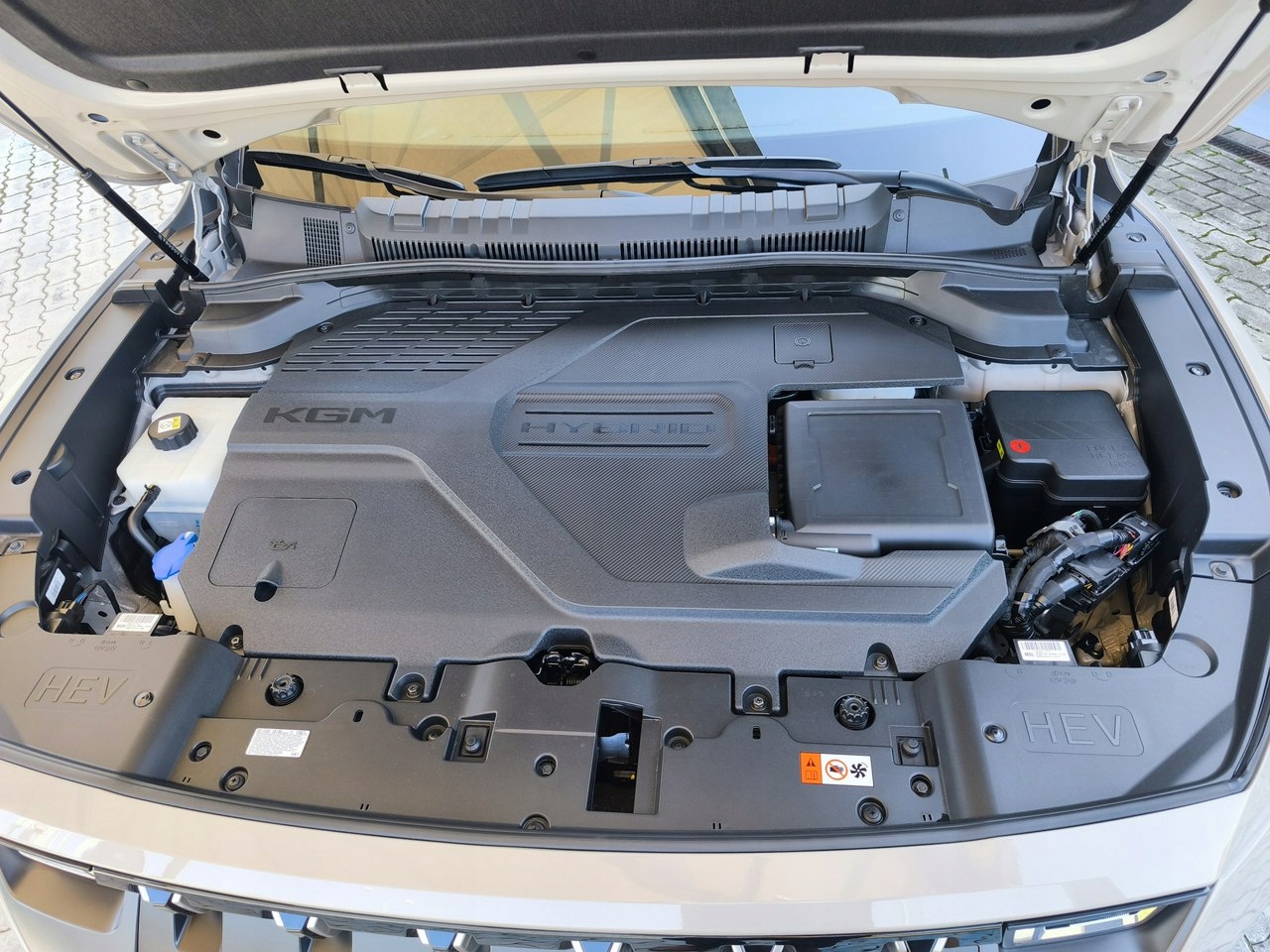 В KGM Torres Hybrid используется полная гибридная система. Dual-Tech Hybrid – это современная последовательно-параллельная система с двумя электродвигателями (тяговым и генераторным). Это означает, что автомобиль может работать в различных режимах: чисто электрическом (режим EV), последовательном гибридном (двигатель внутреннего сгорания приводит в действие генератор, который заряжает аккумулятор) или параллельном гибридном (двигатель внутреннего сгорания непосредственно поддерживает привод колес). В городских условиях автомобиль до 94% времени ездит в электрическом режиме — бензиновый двигатель часто остается выключенным, а привод обеспечивает мощный электродвигатель. Лишь на повышенных оборотах или при нажатии педали акселератора внезапно блок сгорания запускается и плавно начинает работать. Переходы между электроприводом и приводом внутреннего сгорания очень плавные, включение бензинового двигателя незаметно и происходит без рывков. Благодаря этим характеристикам Torres Hybrid предлагает ощущения, аналогичные ощущениям от электромобиля. Средний расход топлива в городском цикле составляет ок. 6.0л/100км.