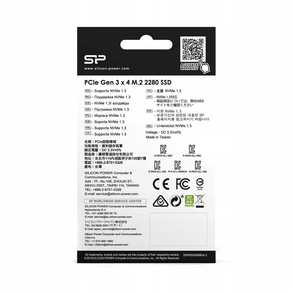 Твердотельный накопитель Silicon Power A80 емкостью 1 ТБ — идеальное решение для людей, которым нужен быстрый и надежный диск для своего компьютера. Благодаря формату M.2 2280 и интерфейсу PCIe NVMe 3.0 x4 вы достигнете максимальной скорости чтения до 3400 МБ/с и скорости записи 3000 МБ/с. Технология TLC обеспечивает не только производительность, но и долговечность накопителя. Этот продукт соответствует самым высоким стандартам качества и безопасности, что подтверждается сертификацией CE/FCC/BSMI/Green dot/WEEE/RoHS/KCC.