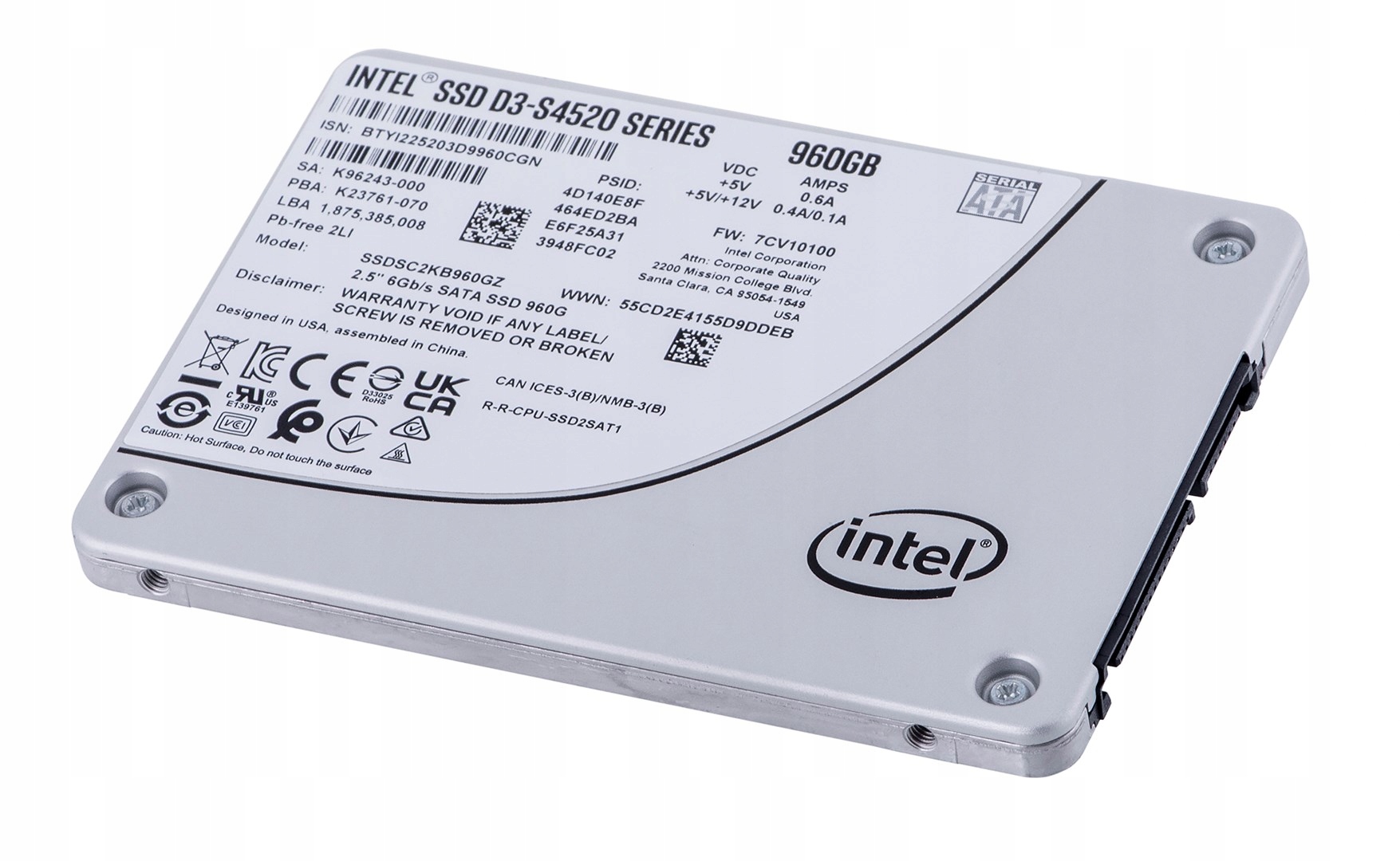 Твердотельный накопитель Solidigm (Intel) S4520, 960 ГБ, SATA, 2,5 дюйма, SSDSC2KB960GZ01 (DWPD до 3)