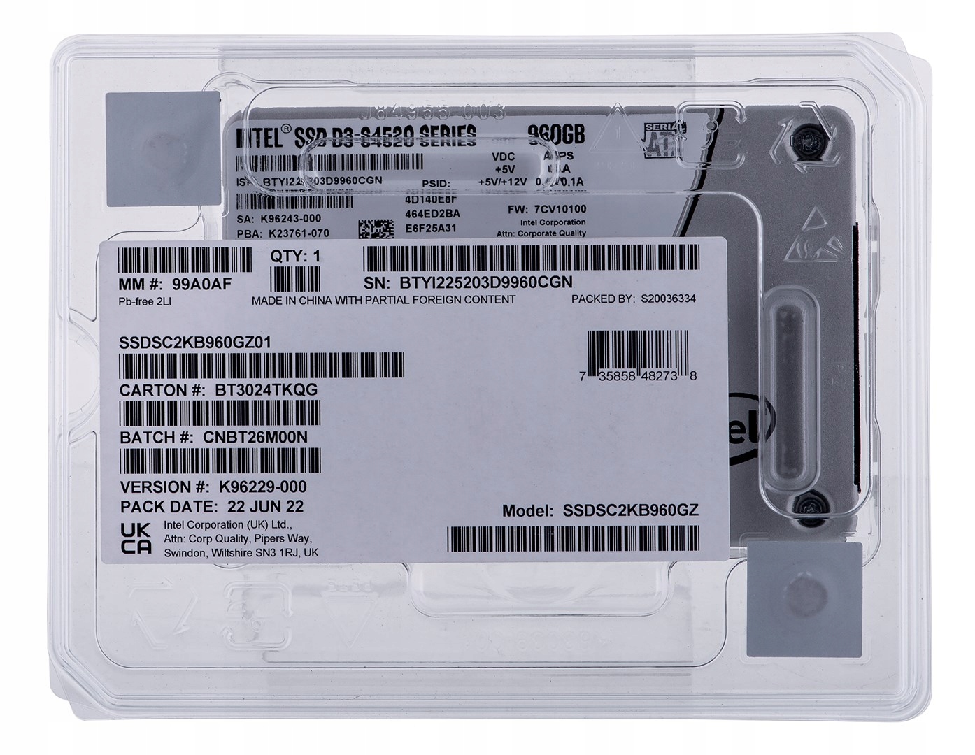 Твердотельный накопитель Solidigm (Intel) S4520, 960 ГБ, SATA 2,5SC2KB960GZ01 (до 3 DWPD)