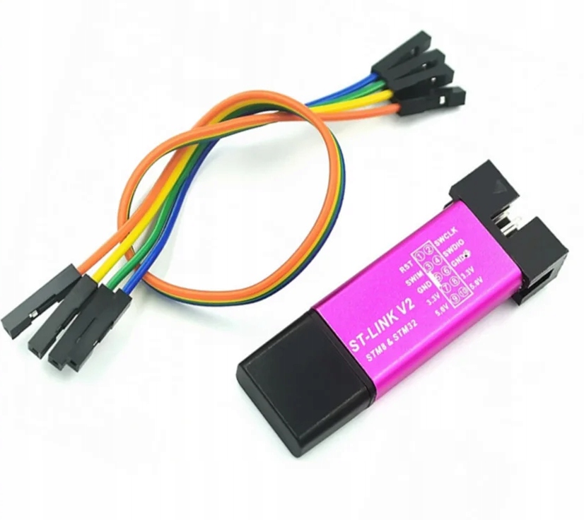 ST-LINK V2 — программатор и отладчик с поддержкой микроконтроллеров STM32 и STM8, обеспечивающий надежную связь с компьютером через интерфейс USB. Устройство имеет выделенный разъем ISP для подключения кабелей и металлический корпус с нанесенным на него описанием контактов. Связь с микроконтроллерами STM32 происходит по интерфейсу SWD, а с STM8 по протоколу SWIM. ST-LINK V2 совместим со многими средами разработки, такими как ST-LINK Utility, STVD, STVP, IAR EWARM, IAR EWSTM8 и KEIL RVMDK, поддерживая последние версии этих инструментов. Дополнительно модуль оснащен светодиодом, сигнализирующим о наличии питания.