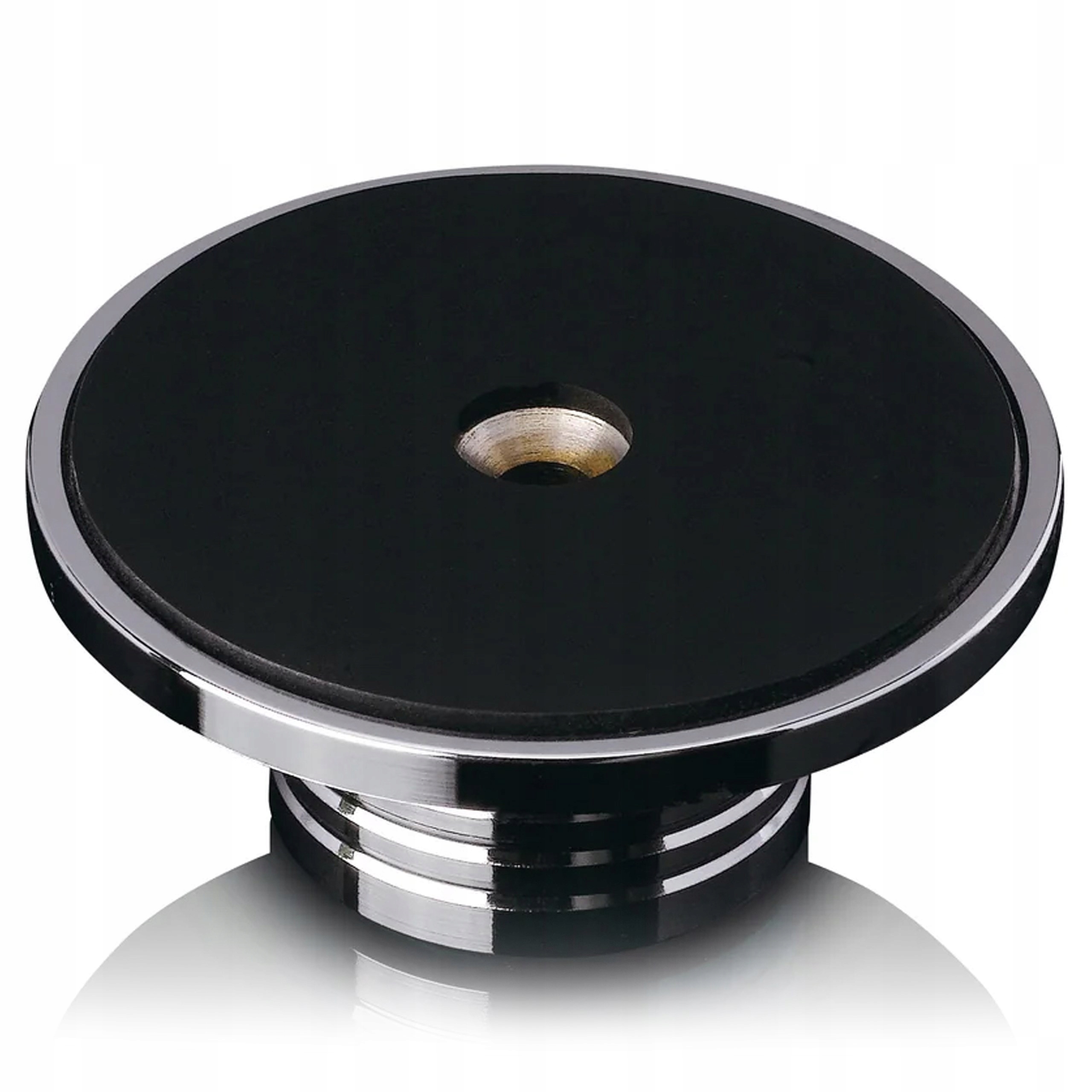 ✅ Металлический, хромированный зажим для виниловых пластинок, обеспечивающий стабильность и лучшее прилегание пластинки к опорному диску проигрывателя.