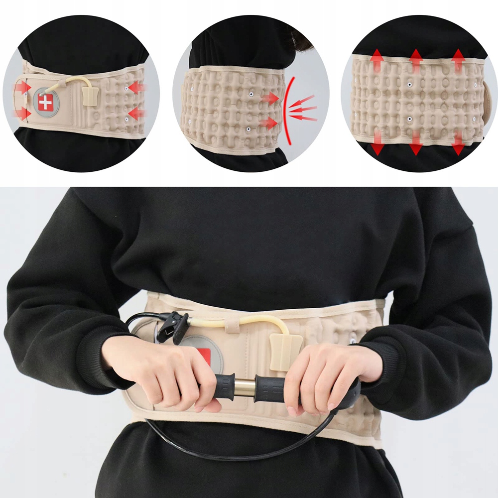 - 🔹Пояс содержит несколько воздушные цилиндры, которые при надувании обхватывают поясницу, создавая дугообразную тракцию.