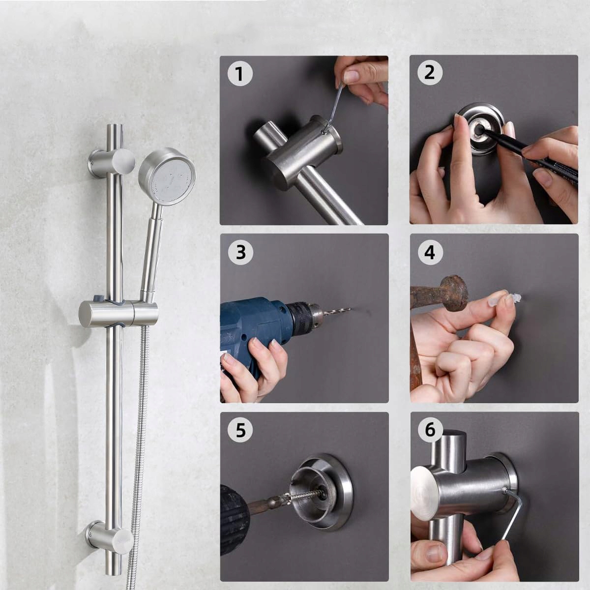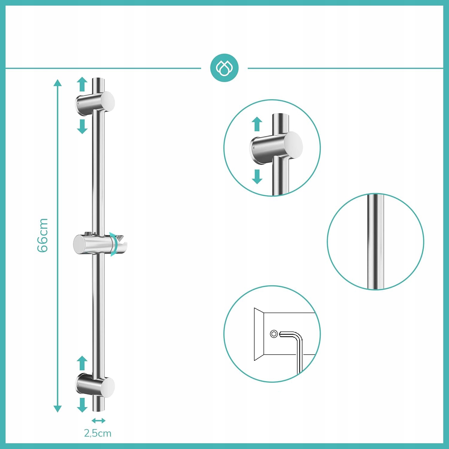 🚿🚿🚿 【【【【 【【【【 【【【【 【【【【 stule Shower】 палочка для душа Длиной 66 см и изготовлен из нержавеющей стали с легкой хромированной поверхностью, она устойчива к царапинам и легко чистить. Душевая палочка имеет диаметр 25 мм, простой и классический дизайн и является универсальным, подходит для небольших помещений/комнат и угловых установок. > Ручной регламент на высоте подставки, изготовленный из ABS, который может быть адаптирован к реальным потребностям. Держатель для душа с душевой палочкой может быть свободно отрегулировать под любым углом 360 градусов и идеально подходит для большинства наушников, доступных на рынке. Высококачественная стержня для душа из нержавеющей стали, стабильная установка, нелегко брить и нелегко упасть. Обе ручки на стене могут быть демонтированы и могут использоваться повсеместно в существующих отверстиях; Каждый держатель стены может быть прикреплен к стене с помощью 1 винта. поднос от скольжения. Основа стабильна и нелегко ослабить, эффективно определяя угол душа