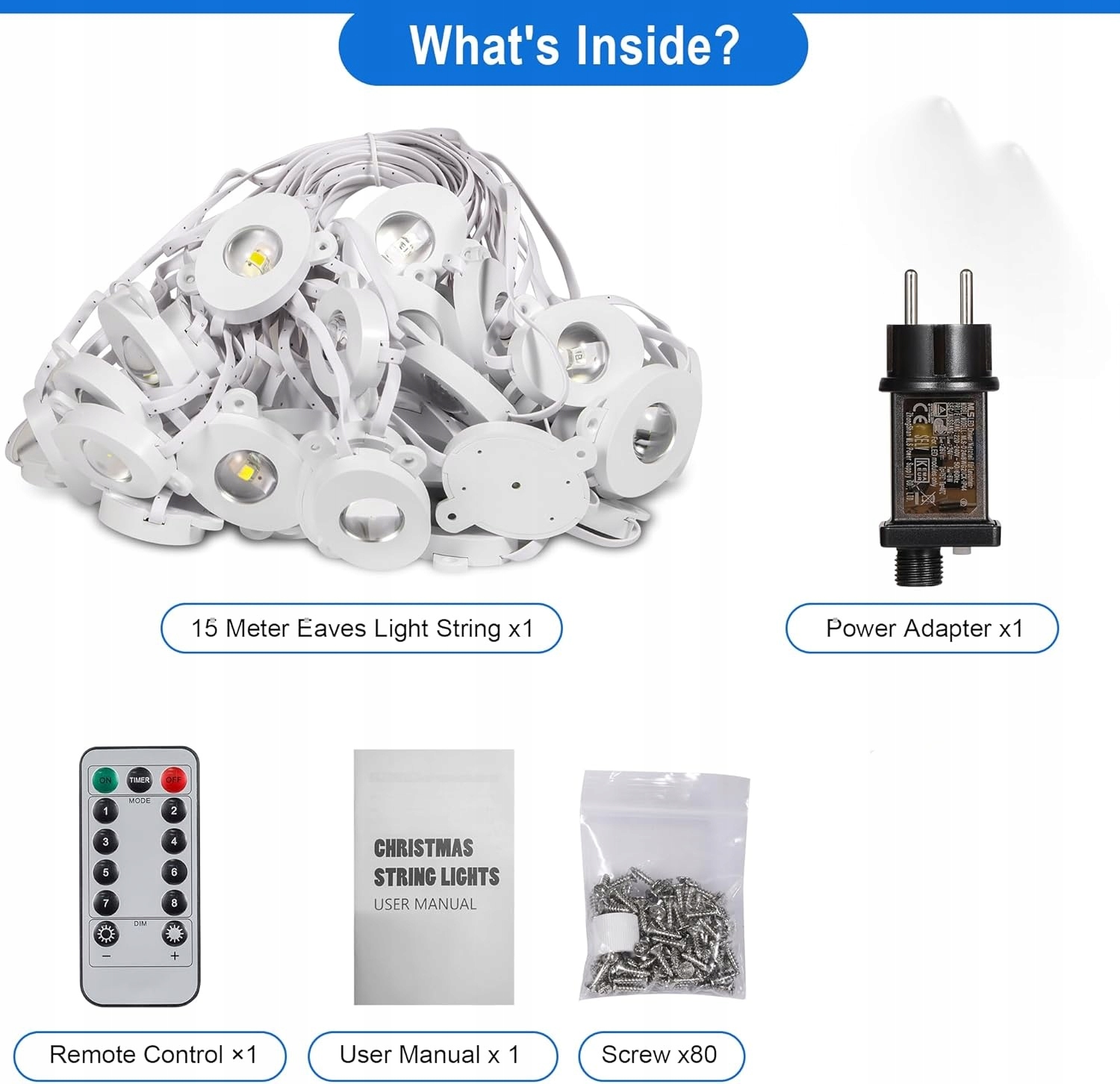 - Постоянное наружное освещение: 15 м, 36 светодиодов, удлинитель 5 м, белый кабель. Рождественские гирлянды, для улицы, для помещения, с питанием, с дистанционным управлением, подключаемые (максимум 3).