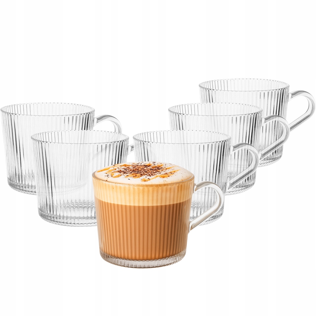 СТАКАНЫ, КРУЖКИ, ЧАШКИ С РЕЗИНАМИ, большие, ребристые, для кофе и чая, 400 мл, 6x