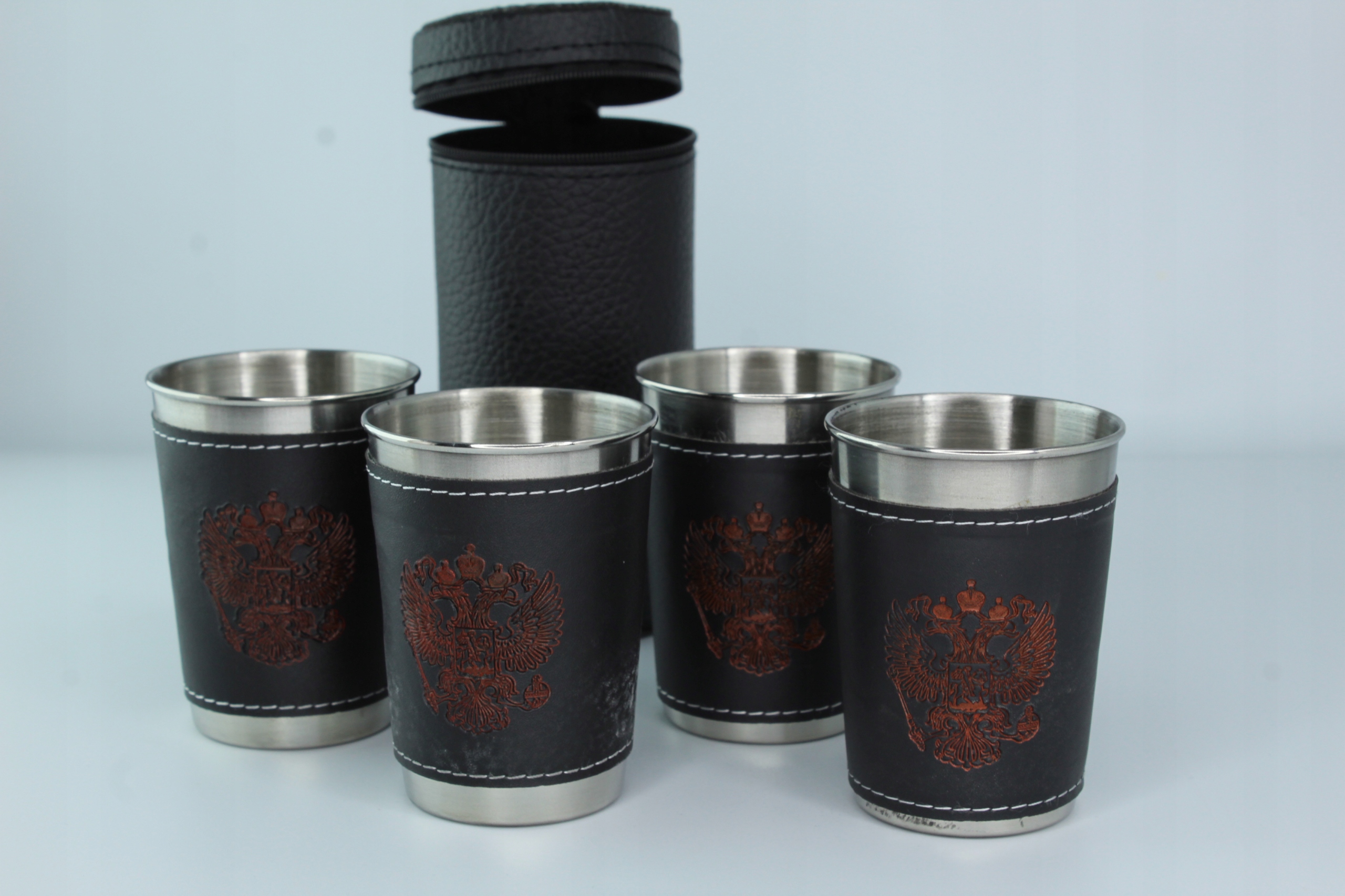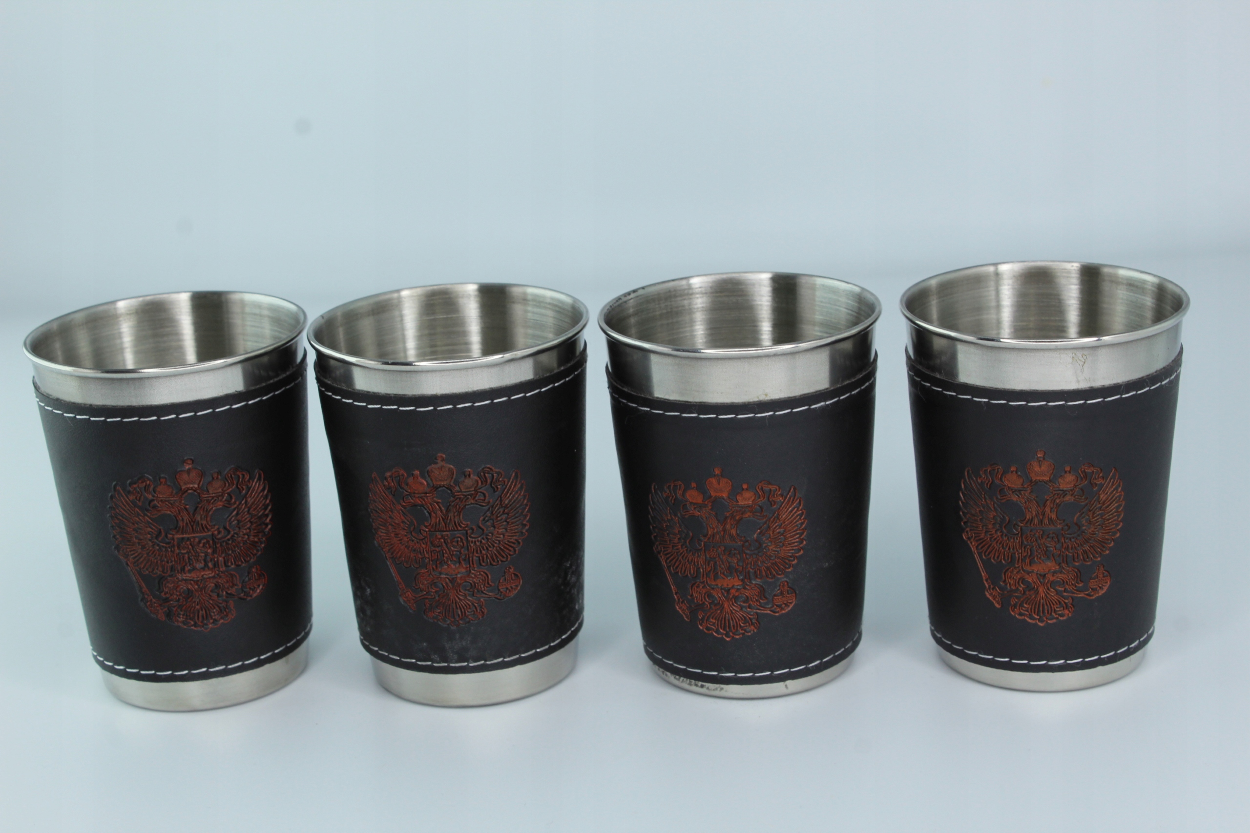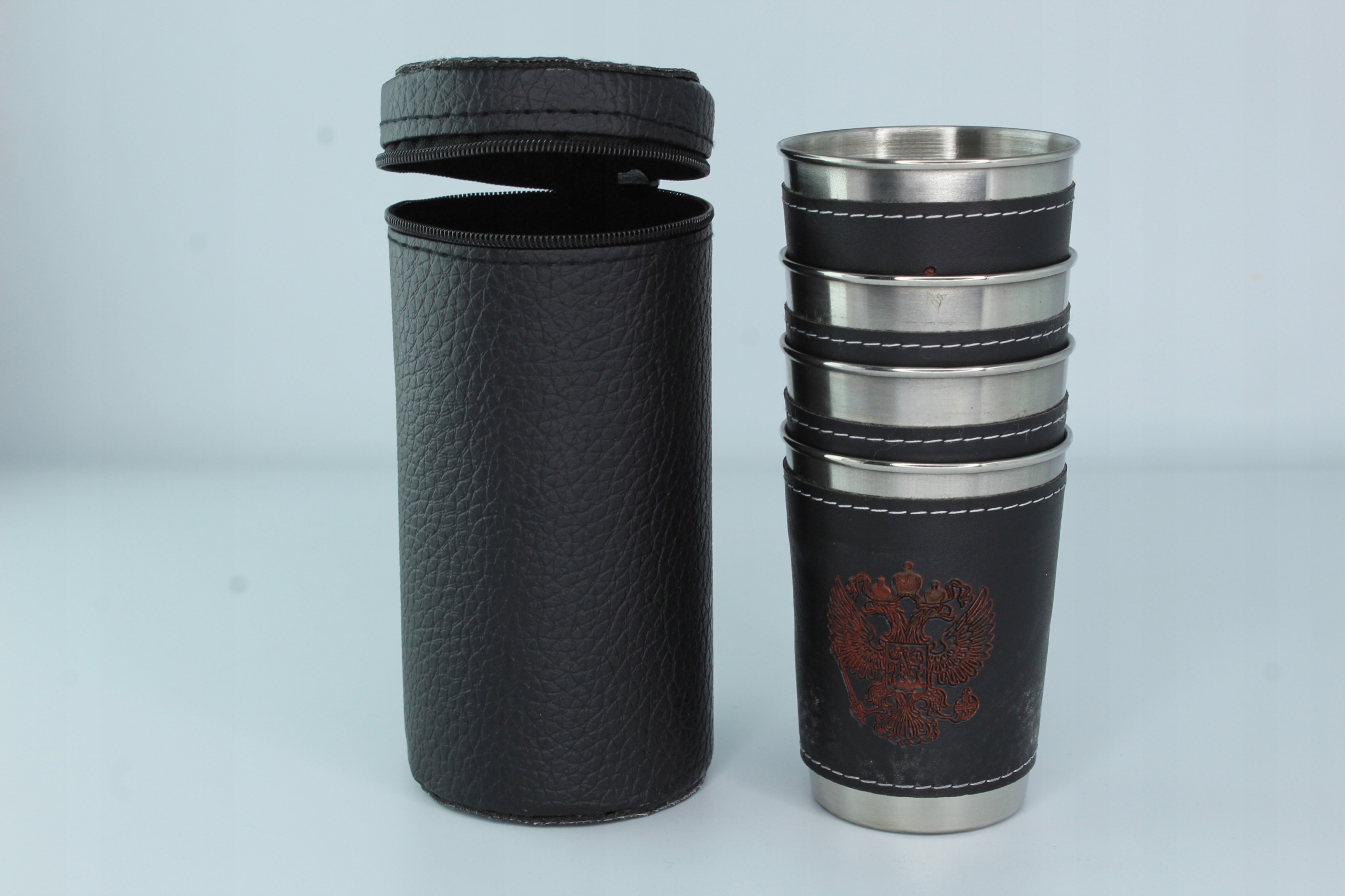 ТУРИСТИЧЕСКИЕ ОЧКИ 4 x 170 мл КОЖАНЫЕ ОЧКИ С НАДПИСЬЮ CCCP И ГЕРБОМ + КОРПУС