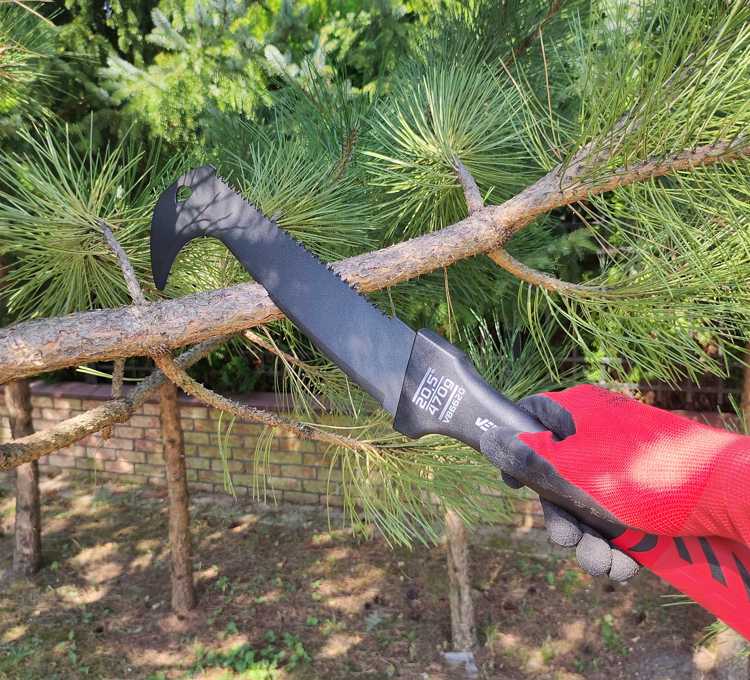 Мачете, таверна - это разрезание деревьев, разрезание кустарников и проникающих более толстых ветвей и ветвей. Изогнутая голова и острый край гарантируют легкий, быстрый и эффективный порез. Эргономическая ручка обеспечивает удобную сцепление и предотвращает скольжение инструмента. Низкий вес минимизирует усилия, необходимые для выполнения работы.