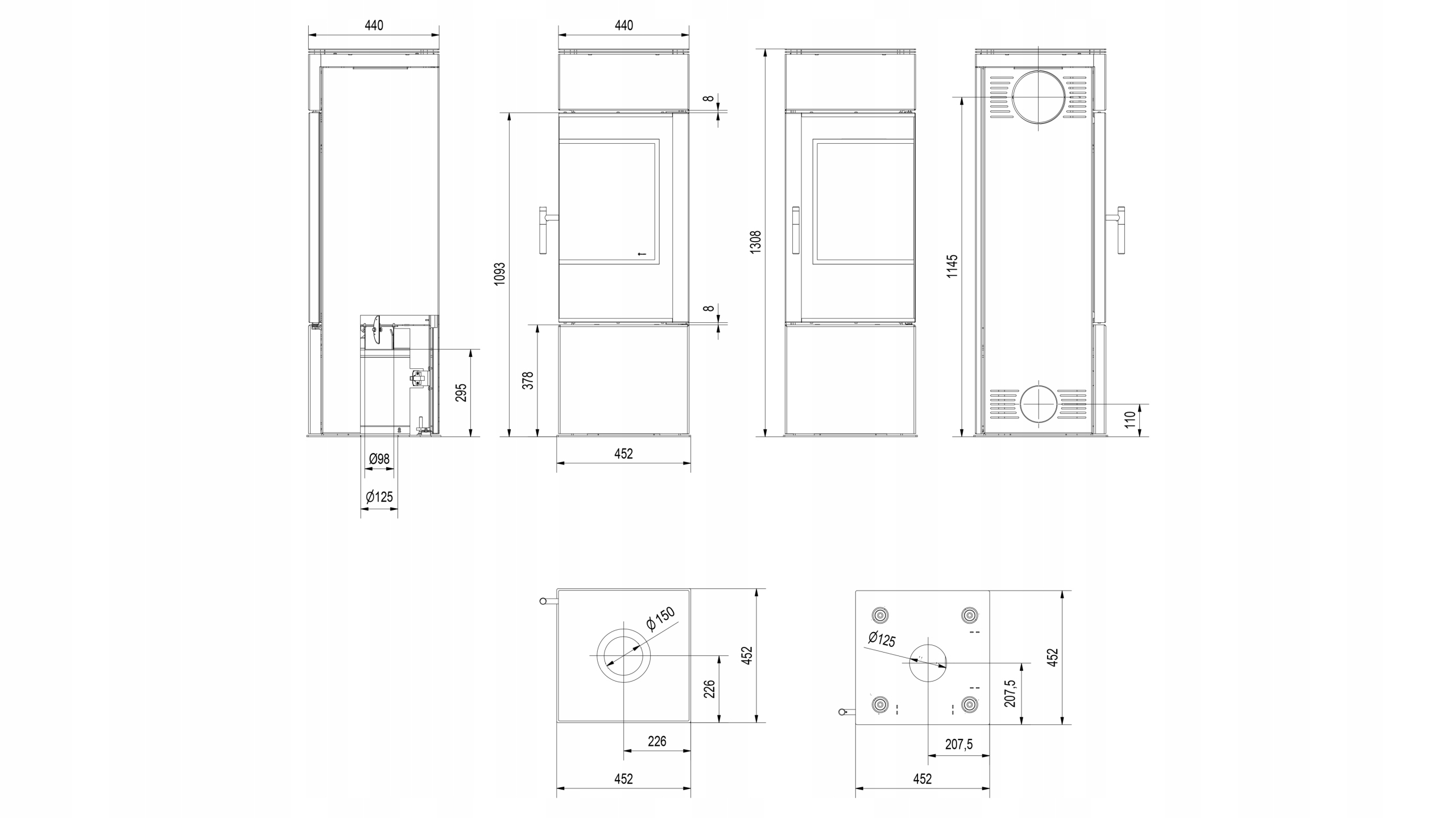 Кроме того, в печи используется система чистого стекла (воздушная завеса), т.е. воздух подается непосредственно к стеклу через систему каналы, расположенные по бокам камина. Таким образом кислород подается в верхнюю часть камеры сгорания, где дожигаются газы, образующиеся в процессе сгорания древесины, что дополнительно снижает выбросы вредного CO2 в атмосферу.