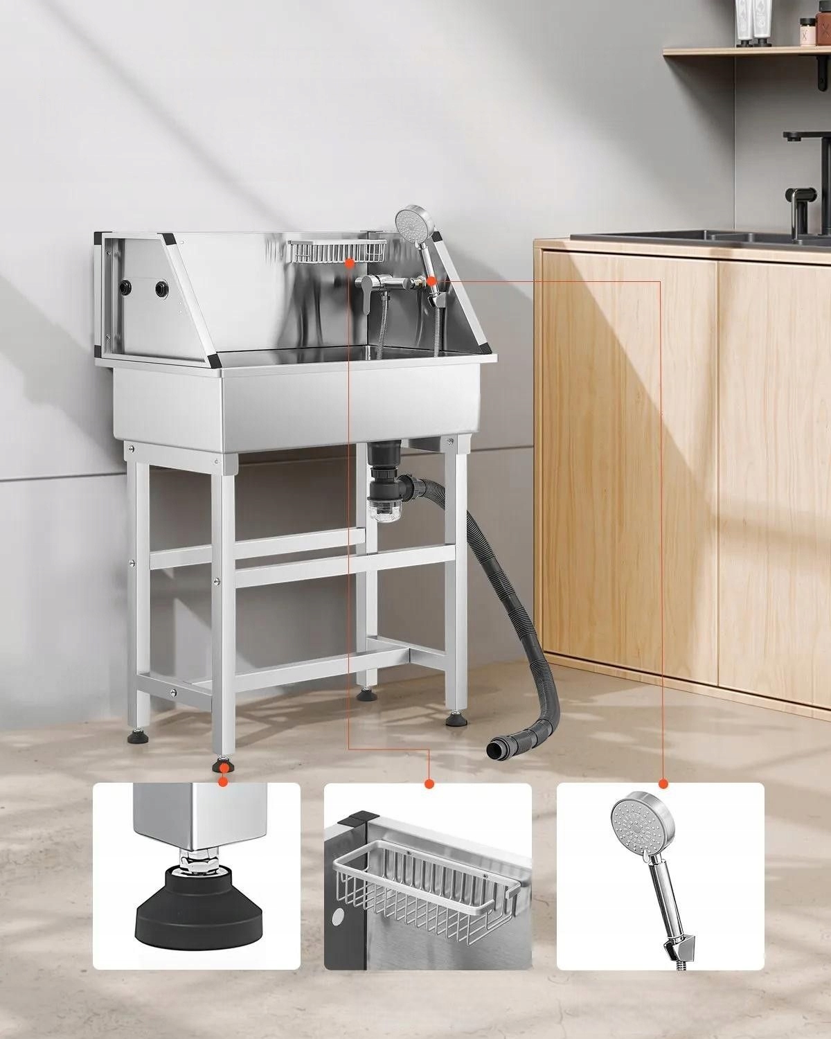 Стальная ванна для ухода за собаками с душем и полкой для купания животных