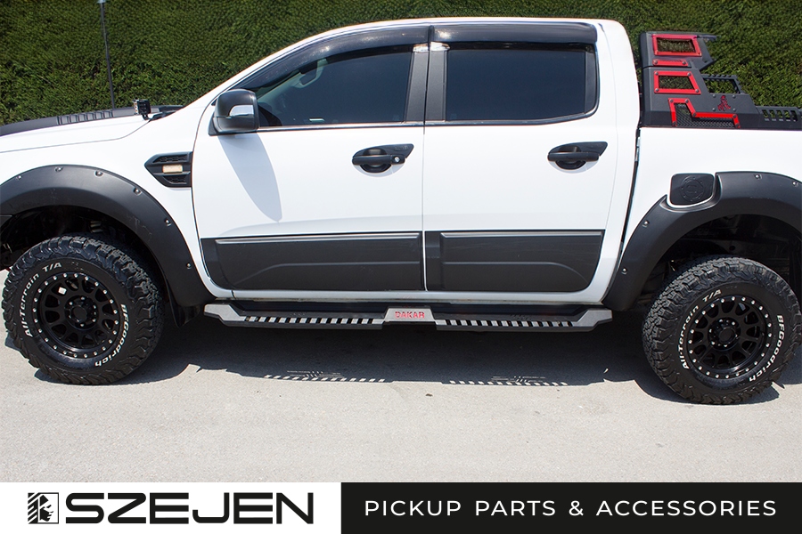 Современный дизайн порогов гармонично гармонирует с линиями автомобиля, подчеркивая его агрессивный и внедорожный вид.