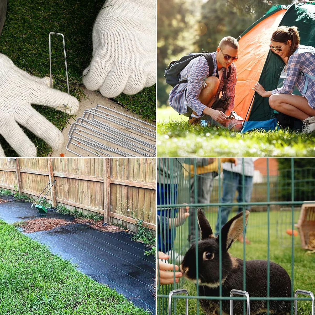 Грей -гвозди идеально подходят для фиксации полиэтиленовой фольги, гербицидных тканей и линий заземления. Он идеально подходит для крепления газонов, тканей, искусственной травы, гербицидных барьеров, внешних проводов, водонепроницаемых тканей, садовых тканей, змей и т. Д.
