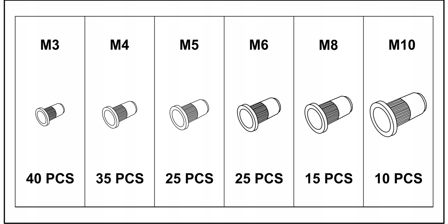 Стальные заклепки крупные стальные стальные наборы M3-M10 150 ПК