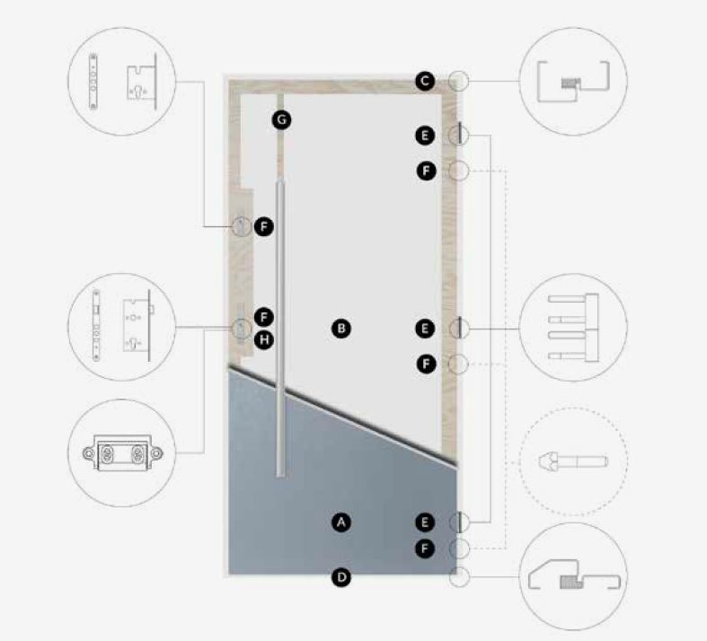 e. Дверь оснащена тремя 3D -петлями диаметром 15 мм, значительно облегчающей регулировку и их функциональность