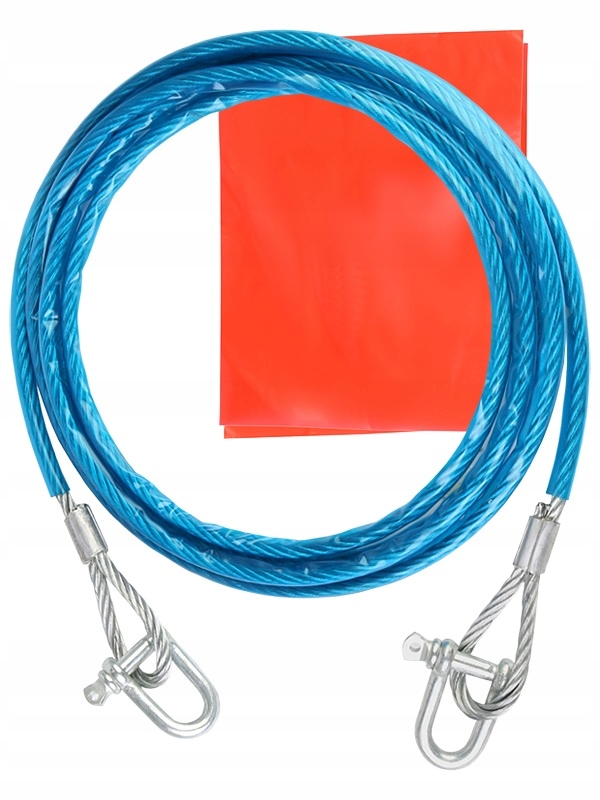 - Трос стальной в оплетке, высокой прочностью до 3Т и длиной до 4 метров. Веревка заканчивается прочной скобой с обеих сторон.