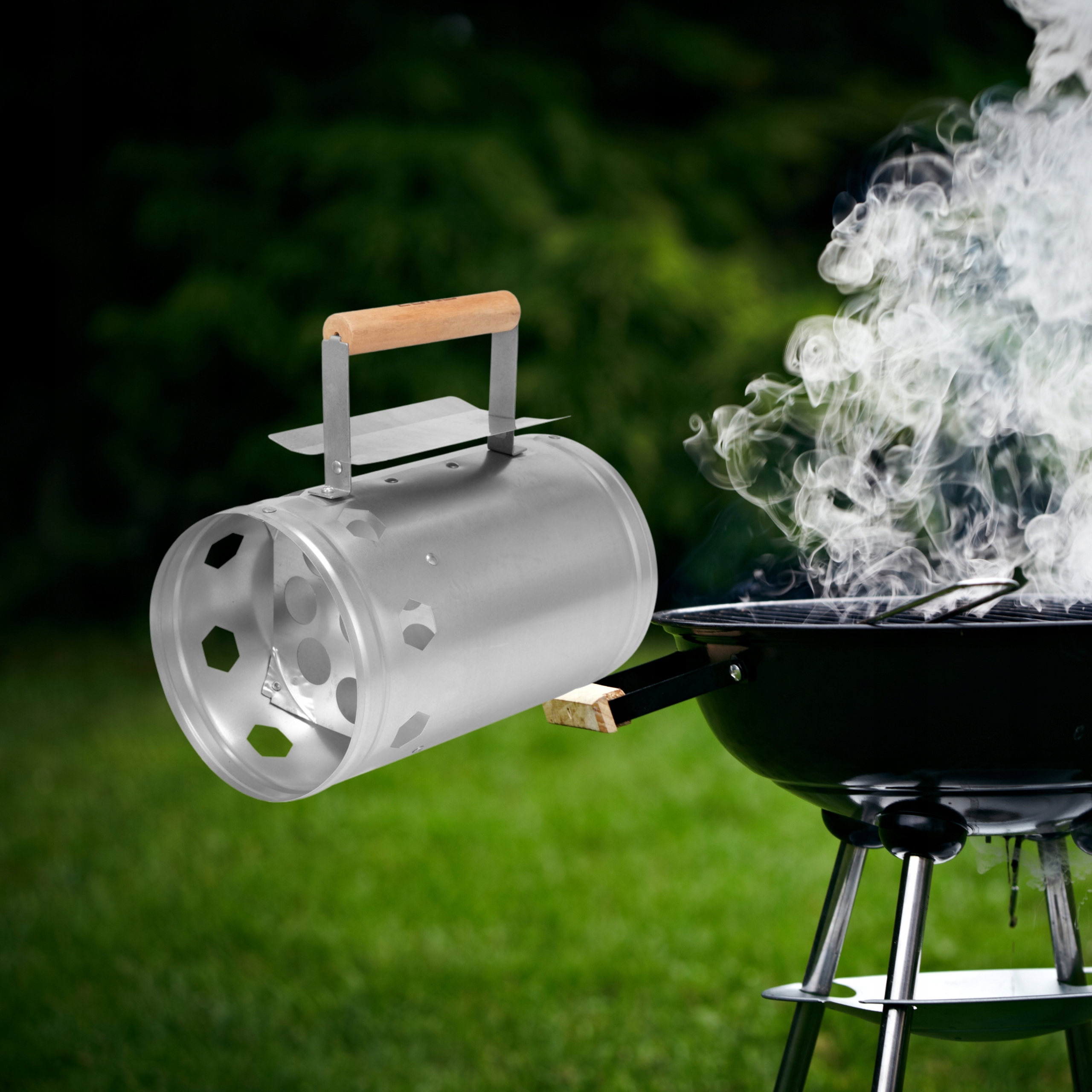 Стальной гриль дымоход с деревянной ручкой h2>