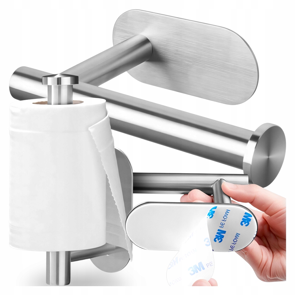 ⭐ Самоклеящийся держатель для туалетной бумаги серебристого цвета. Изготовлен из прочной нержавеющей стали, слегка закругленной формы.