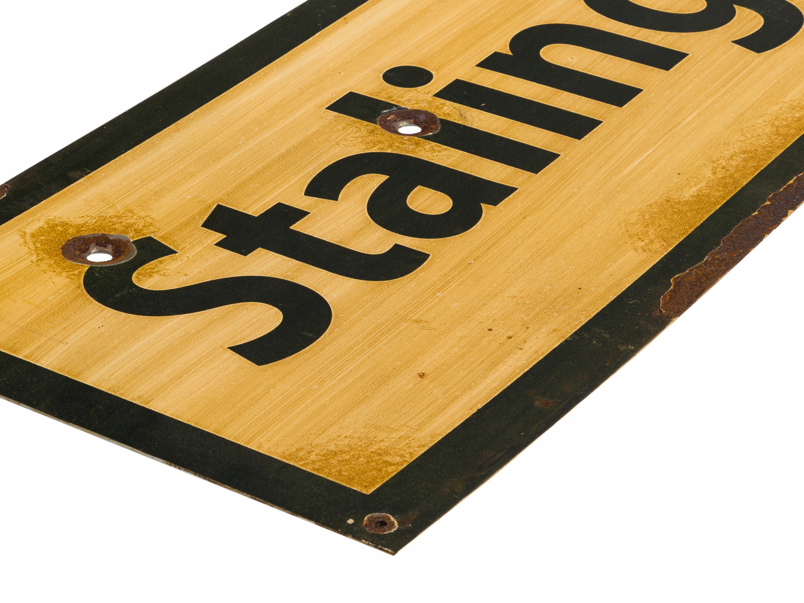 Краска местами стерлась, ржавчина и т.п. 4 дополнительных отверстия по краям позволяют установить знак.