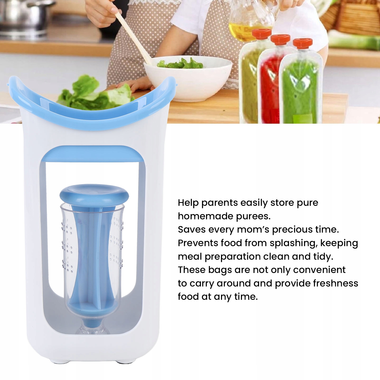 5. Станция наполнения кошельков: позволяет вам проводить меньше времени на кухне и больше времени с малышом. Эта станция для отжима спроектирована так, чтобы быть удобной в использовании, что позволяет легко готовить и наполнять пакеты с едой, не создавая беспорядка.