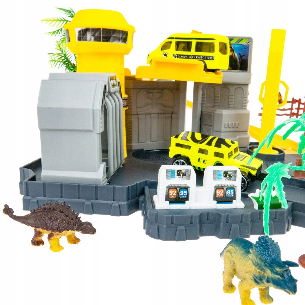 Набор состоит из научной станции-лаборатории и небольшого парка, где они могут ли существовать динозавры. Станция оснащена необычными решениями, которые побудят к игре многих детей. Важным местом является смотровая вышка - оттуда можно следить за тем, что происходит вокруг базы. От башни до нижнего этажа ведет извилистая дорога, и спуск на машине занимает всего несколько минут. В конце есть выход - ворота в виде головы динозавра. Это не обычные ворота - они работают как пусковая установка!