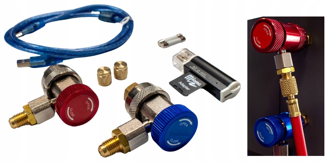 - В комплект поставки входят шланги и сервисные соединения до R134a или R1234Yf (в зависимости от выбранного хладагента)