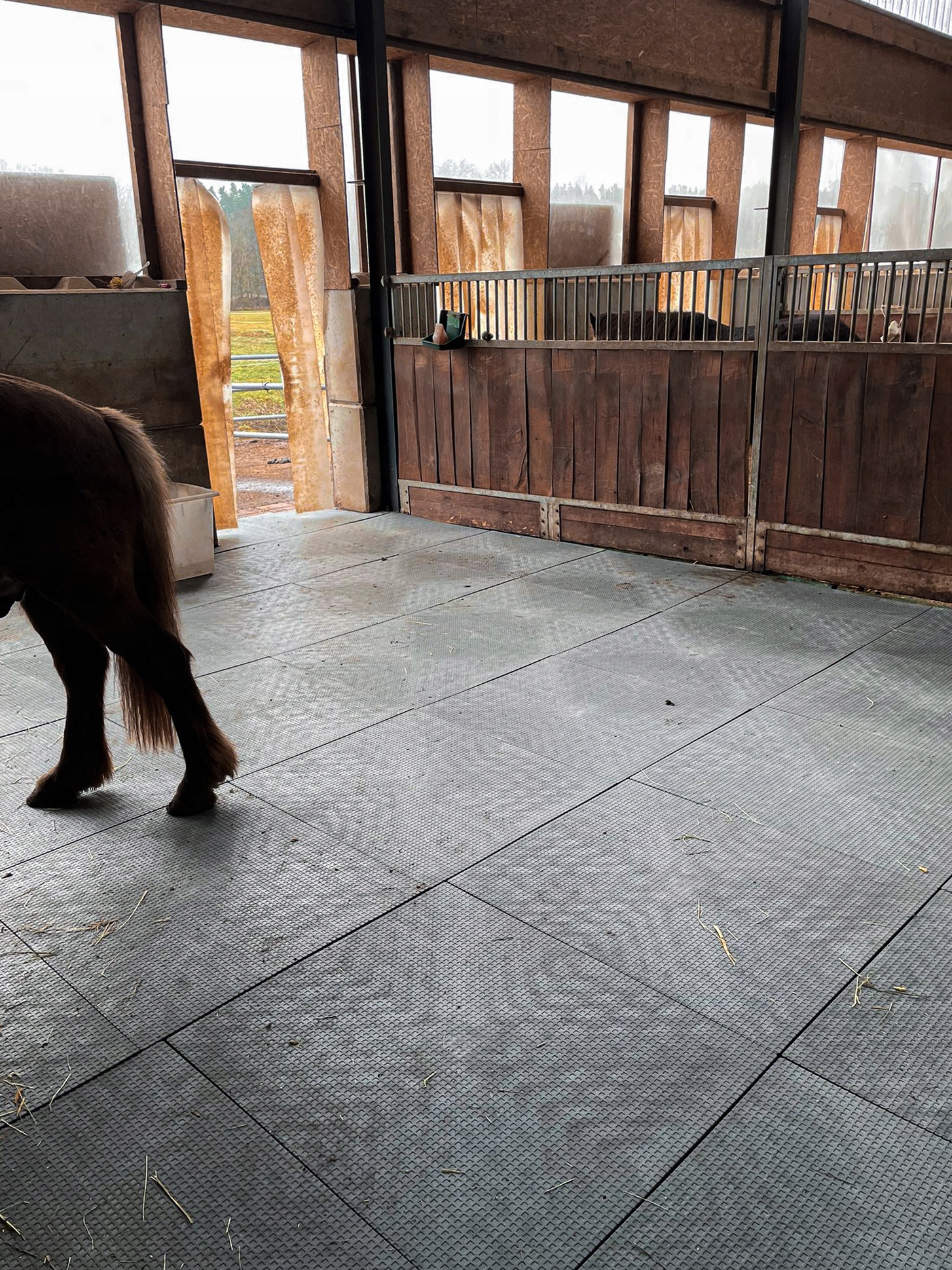 Коврики также можно использовать в вестибюлях и коридорах конюшен.