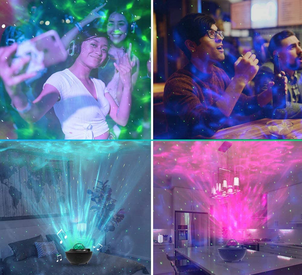 Наш проектор — это новейшая модель звездных проекторов, которые становятся все более популярными. Что отличает его от других, так это определенно лучшее качество и разнообразие отображаемых проекций. Устройство может имитировать проекцию красочной и успокаивающей галактики или океанских волн. Кроме того, он может излучать лазерные лучи и комбинировать различные эффекты друг с другом в 4 цветах: красном, зеленом, синем и белом. Всего на выбор предлагается 21 световой эффект!
