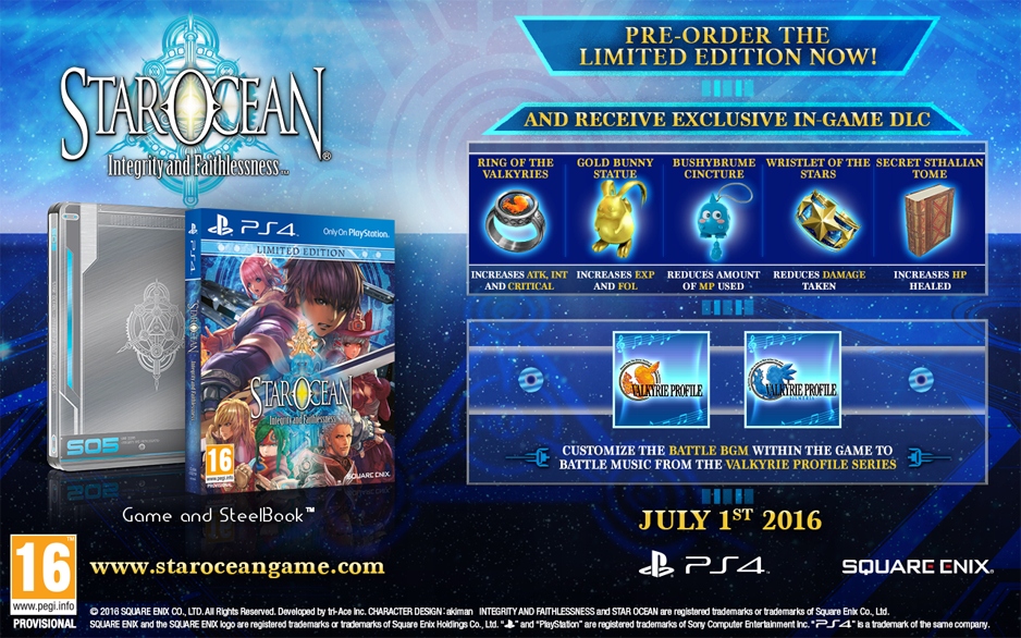 Star Ocean 5: Integrity and Faithhoods для PlayStation 4 — пятая часть серии jRPG, сочетающая в себе эстетику классического фэнтези и научно-фантастических рассказов. Японская студия tri-Ace отвечала за производство сериала с момента его дебюта в 1996 году на консоли SNES. Разработчик, основанный в 1989 году, специализировался на ролевых играх. Среди его работ — «Резонанс судьбы», «Профиль валькирии», «Истории лучистой звезды», а также «Final Fantasy XIII-2» и «Lightning Returns: Final Fantasy XIII». Star Ocean 5, как и многие другие игры студии, создавалась в тесном сотрудничестве с Square Enix. Проект с самого начала готовился с учетом консолей PlayStation 3 и PlayStation 4.