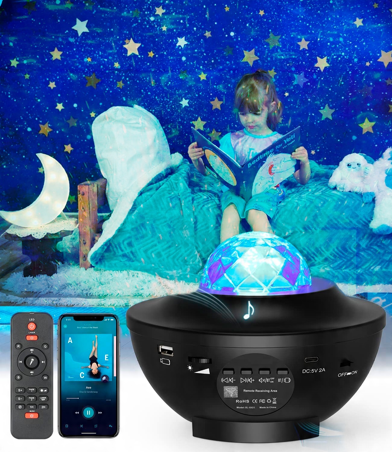| ЗВЕЗДНЫЙ ПРОЕКТОР | МАКС. МОЩНОСТЬ 8 Вт | ПРИЛОЖЕНИЕ| 4 УРОВНЯ СКОРОСТИ | ТАЙМЕР | БЛУЕТУТ | ВРАЩАЮЩАЯСЯ ТУМАННОСТЬ | ЗВЕЗДЫ | ДОКЛАДЧИК | USB-ВХОД |