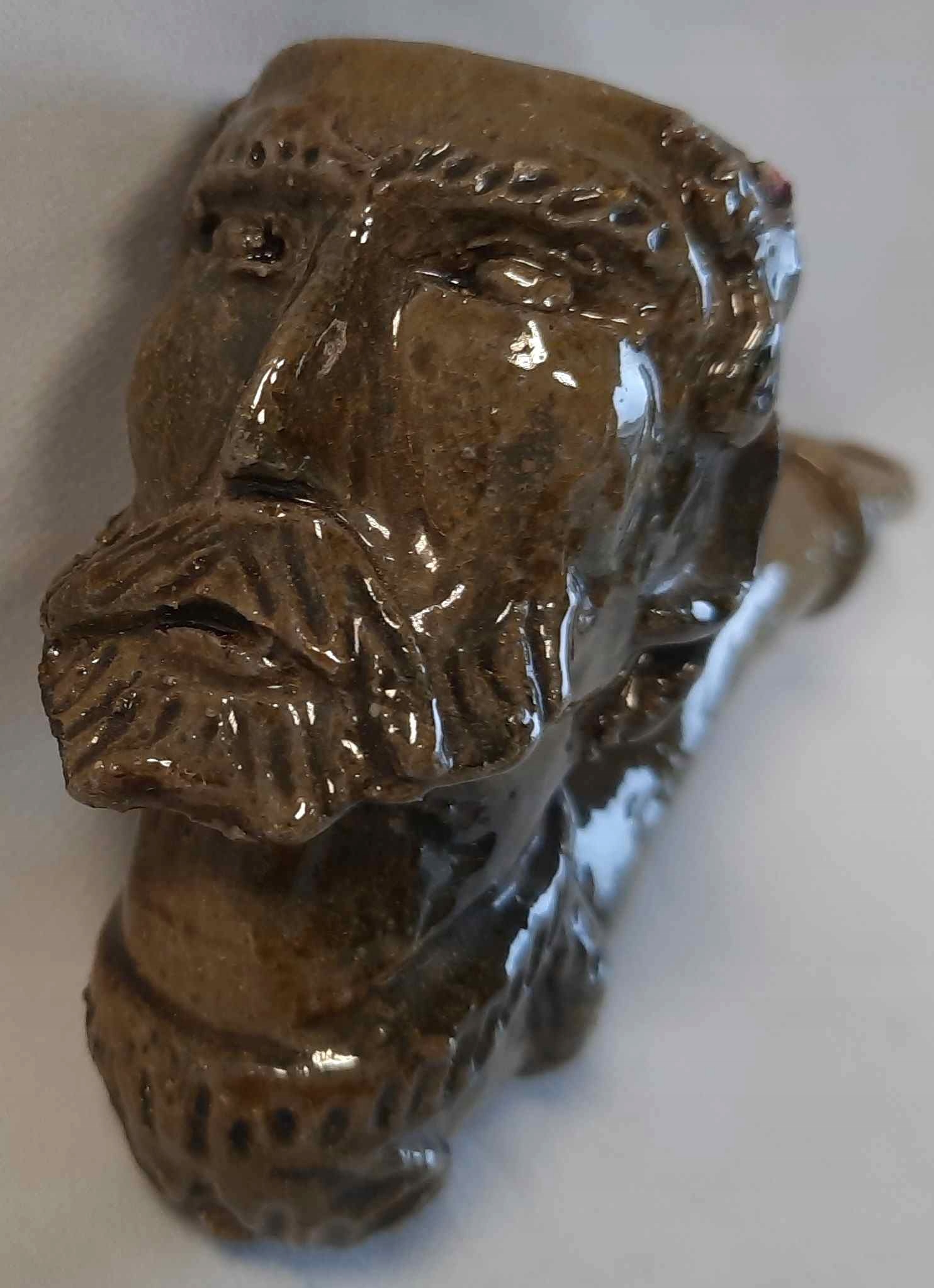 Голова старого керамического трубочного человека, глазурованная керамика