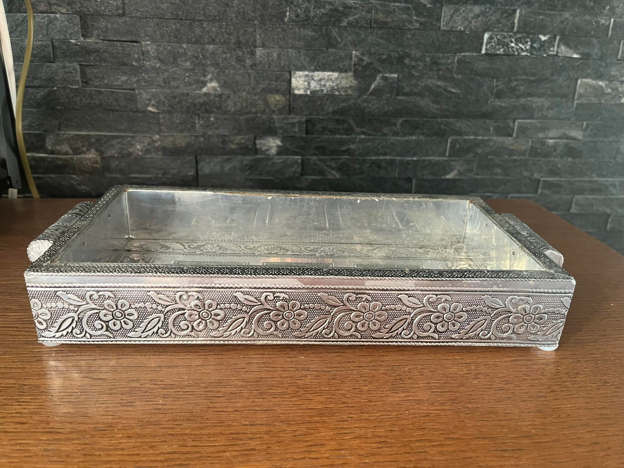 Stara metalowa grawerowana taca patera