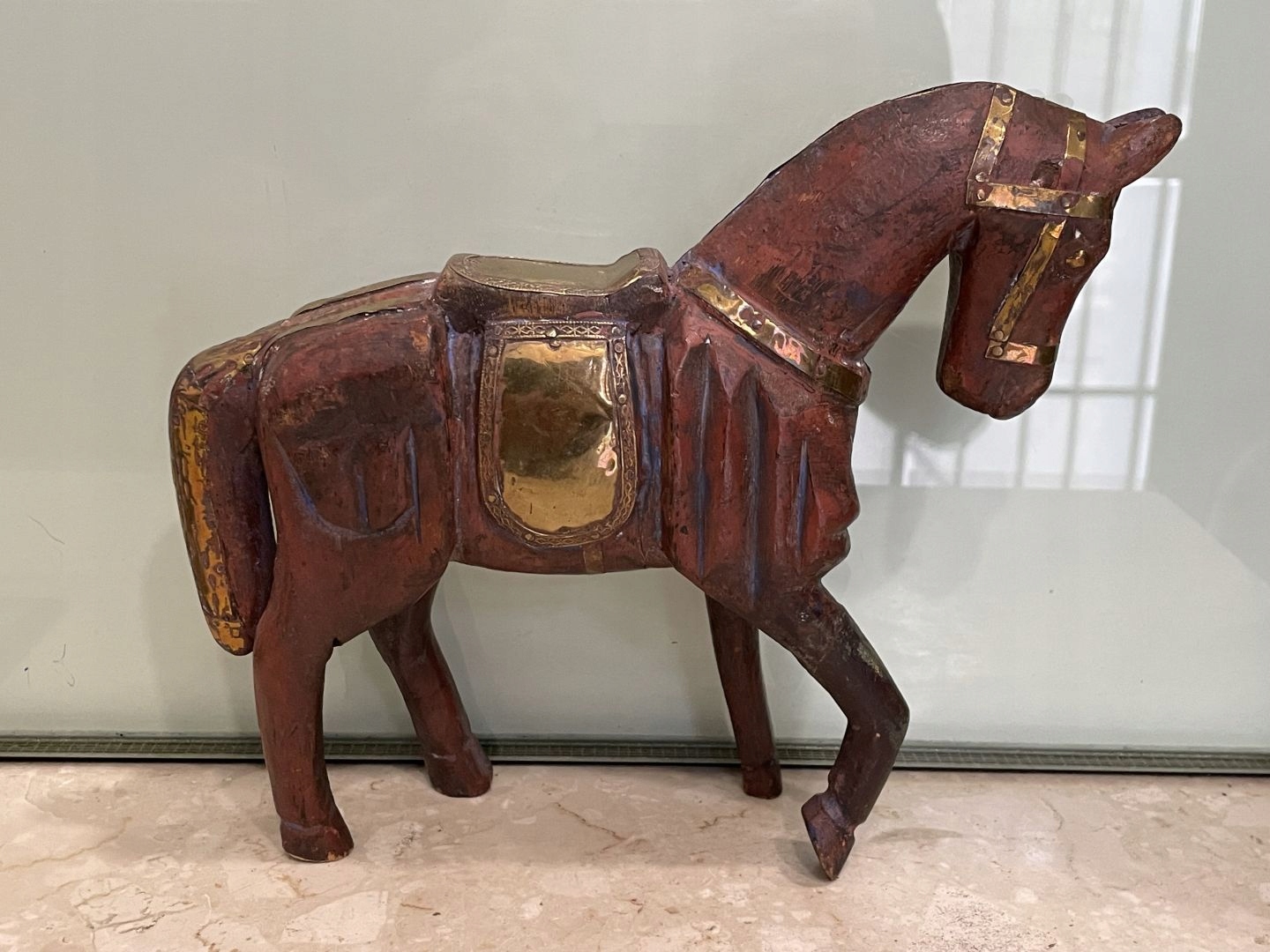 СТАРА СКУЛЬПТУРА - КІНЬ (15) - ЛАТУНЬ ЧЕРВОНОГО ДЕРЕВА - ІНДІЯ