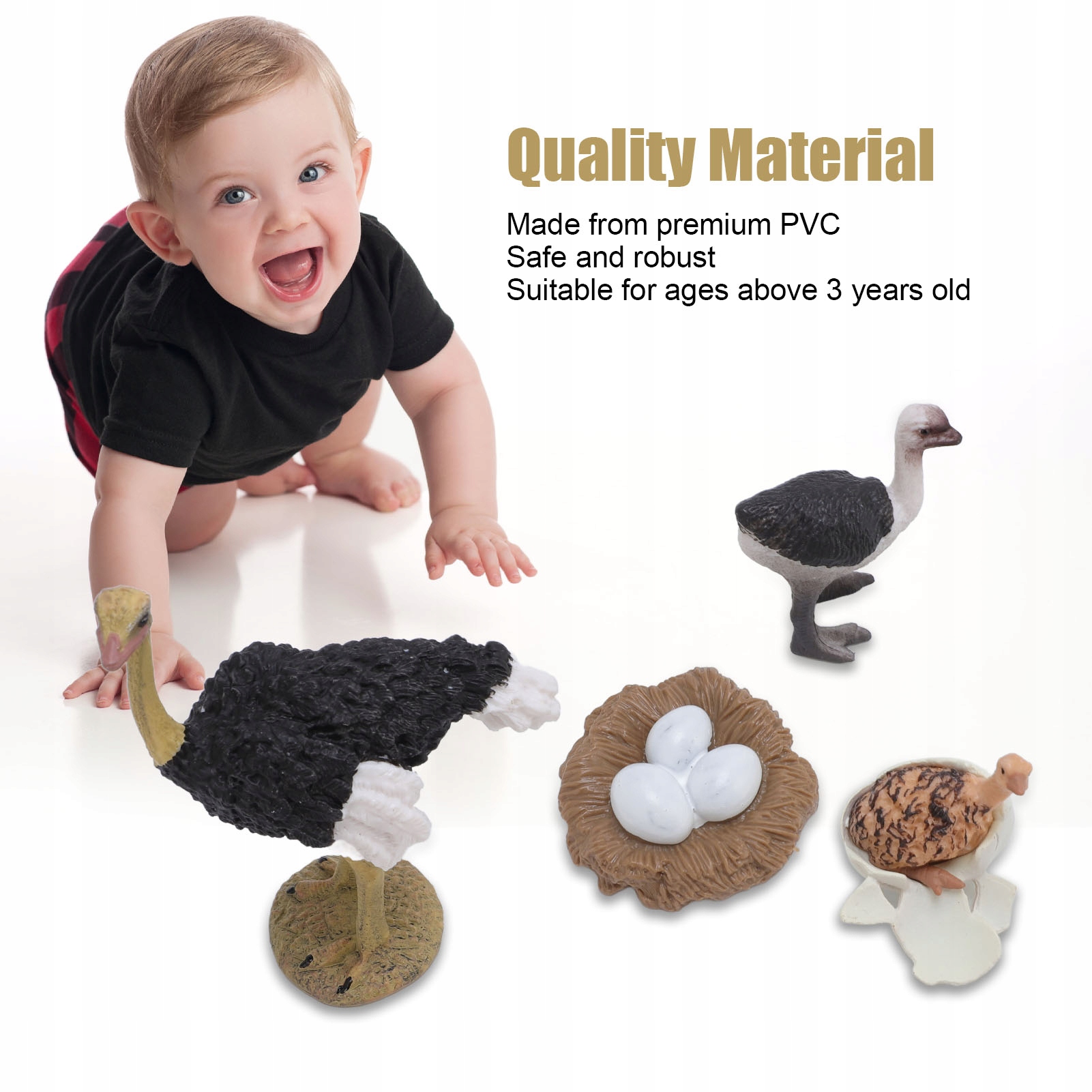 1. Реалистичная модель африканского страуса: эта тонко изготовленная форма страуса чрезвычайно реалистична, что обеспечивает у детей привлекательный опыт, который вызывает их любопытство к дикой природе и природе