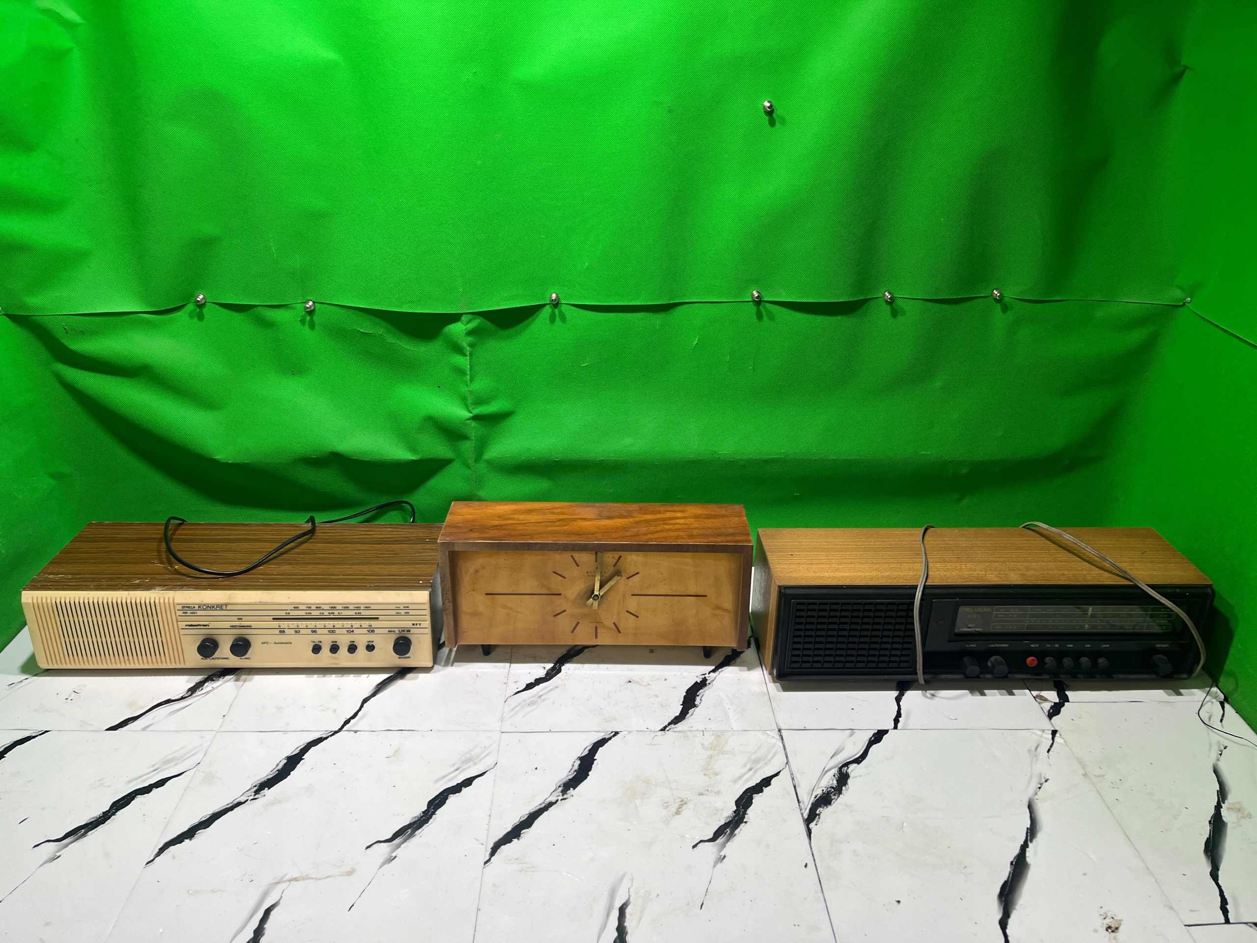 Предметом аукциона являются 2 старых радиоприемника и каминные часы.