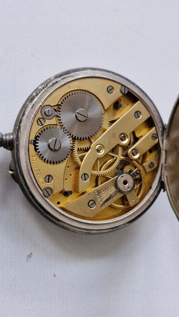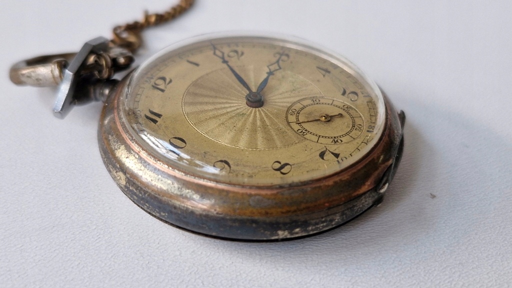 Я должен продать old pocket watch cylinder 10 Steine Silver 0,800 используются часы, полностью функциональные, конверт имеет нормальные следы использования, используемые в виде царапин и грязи, экрана без полостей, маркировки, не носящих, у слайда есть небольшая фигура, как на снимках. У меня больше часов на других аукционах.