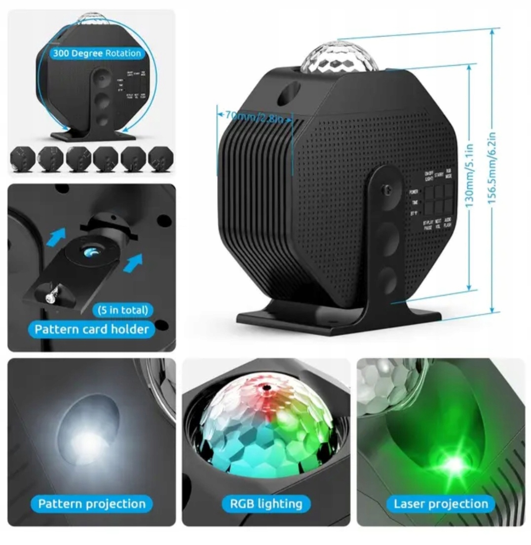 ЗВЕЗДНЫЙ ПРОЕКТОР С BLUETOOTH-ДИНАМИКОМ И 5 СЛАЙДАМИ — ДОПОЛНИТЕЛЬНО ВКЛЮЧЕН ПУЛЬТ ДИСТАНЦИОННОГО УПРАВЛЕНИЯ