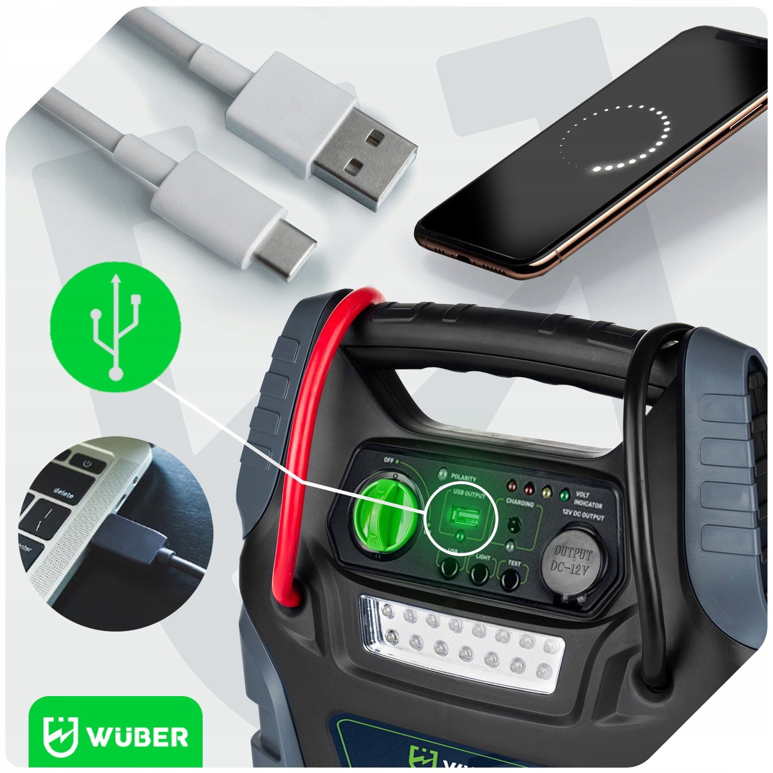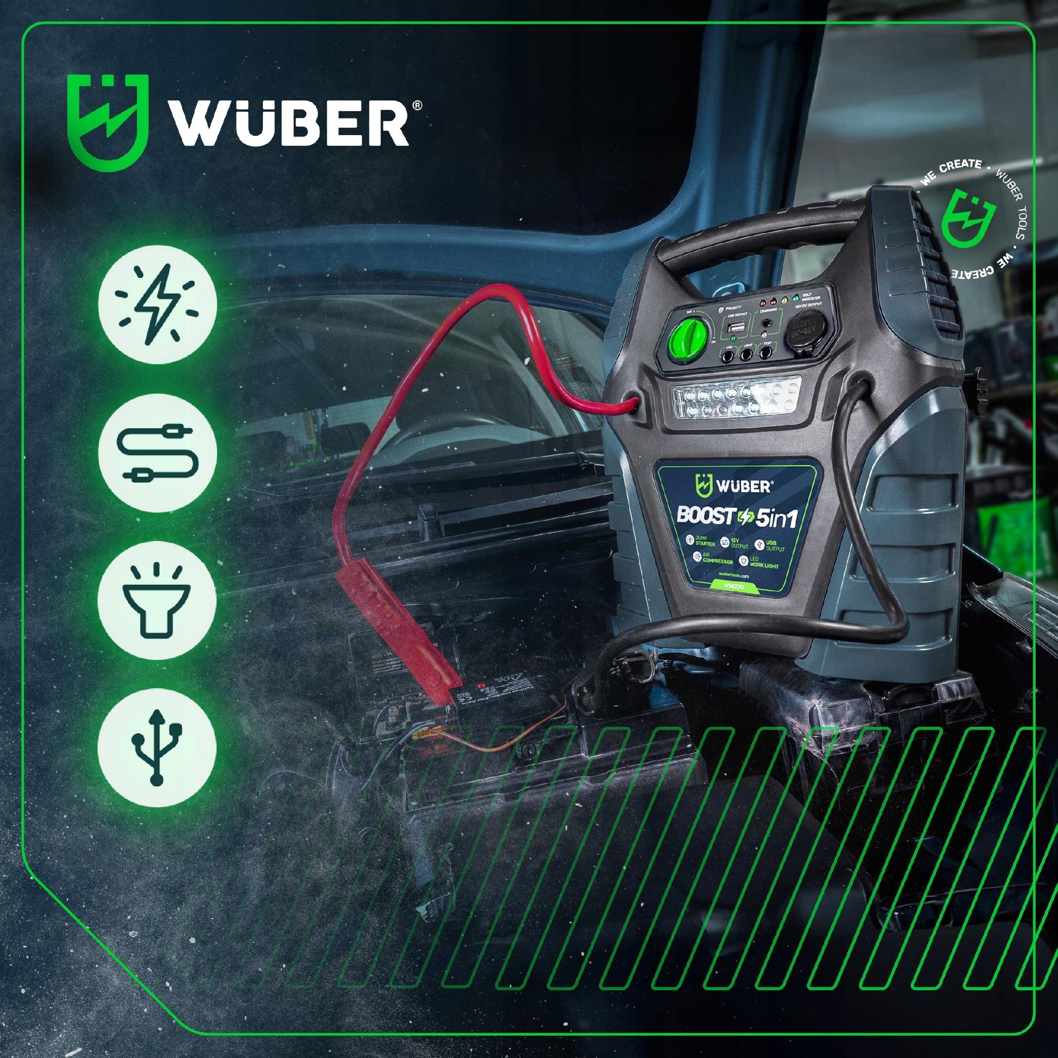 БУСТЕР ВЫПРЯМИТЕЛЬНЫЙ КОМПРЕССОР 5 В 1 ЗАПУСК ОСВЕЩЕНИЯ POWERBANK WUBER