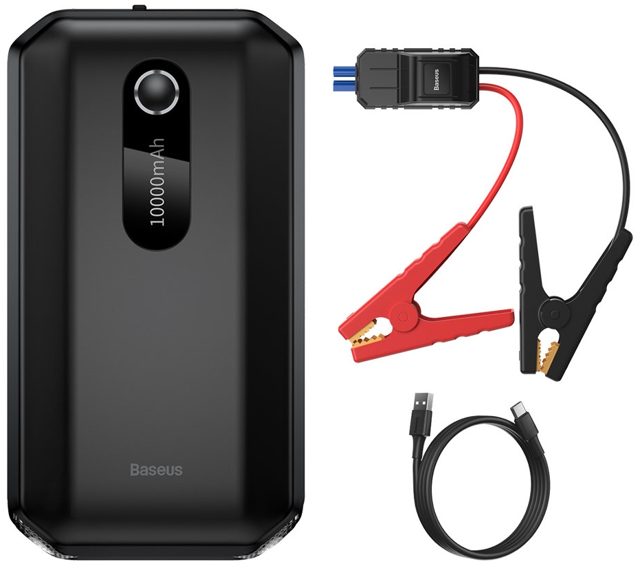 Baseus Power Bank Power Starter Jump Starter, усилитель пускового устройства 10000мАч 12В (1000А / 500А) + кабели с зажимами типа «крокодил», черный (CGNL020101)