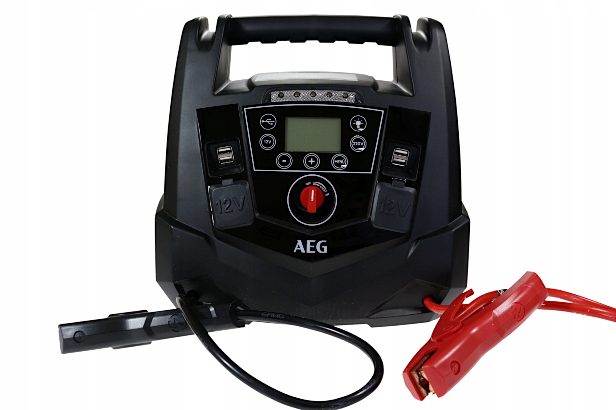 Стартер AEG JP10, оснащенный домашней розеткой переменного тока 220 В, мощностью 200 Вт.