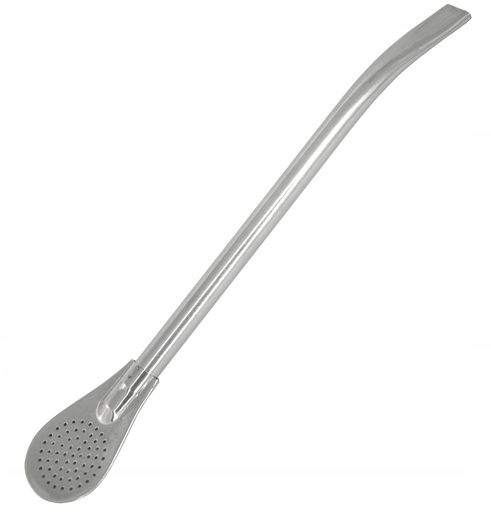 Длина 19 см Слегка профилированная бомбилья из нержавеющей стали с широким ситечком (типа ложки). Я прекрасно фильтрую все виды йербы - элаборады, деспалады, парагвайскую и бразильскую зелень мате, а также мелко измельченные эрбы.