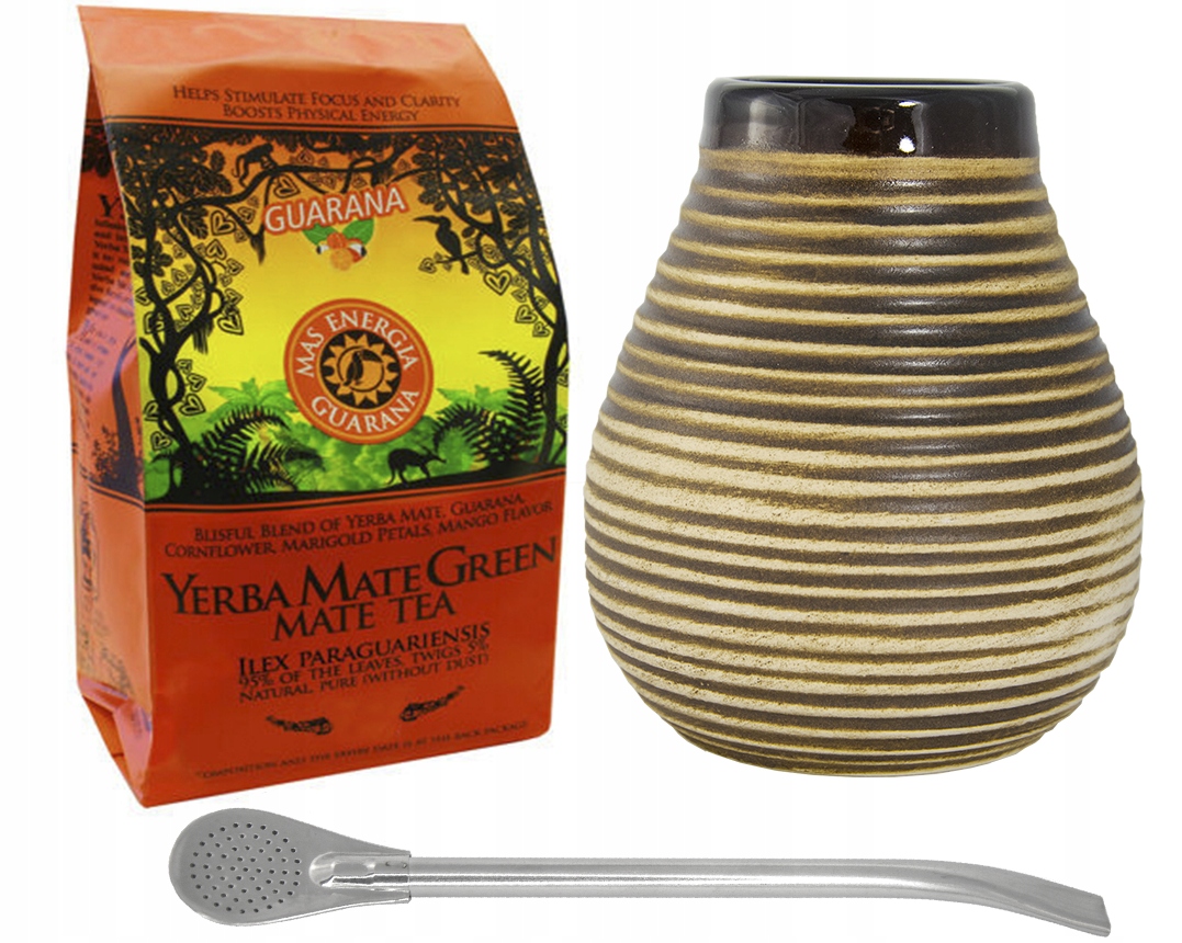 Mate Green mas Energia Guarana включает в себя замечательные добавки, которые разнообразят вкус и увеличивают пользу для здоровья этого мате. Благодаря низкому уровню горечи и вкусным, полезным ароматическим травяным добавкам этот восхитительный и полезный зеленый мате можно использовать как приглашение в великий мир южноамериканских чаев мате, сила которого становится все более известной в Европе. благодаря постоянно растущему интересу к натуральной традиционной медицине и полезным добавкам.
