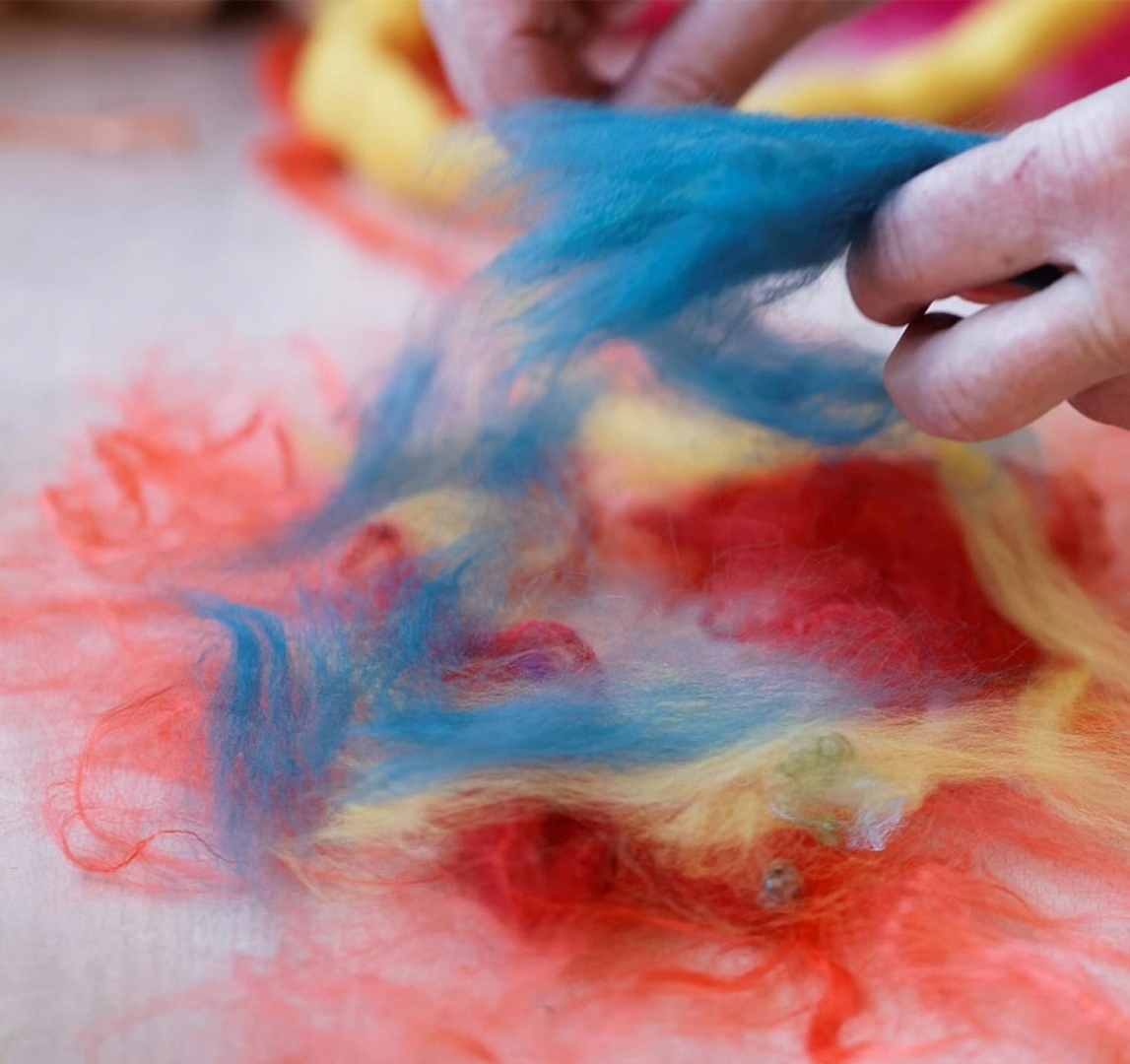 Из мягкой волокнистой шерсти, пушистой и мягкой. Высокое качество, хороший ассортимент, очень безопасно и удобно для новичков или любителей валяния.