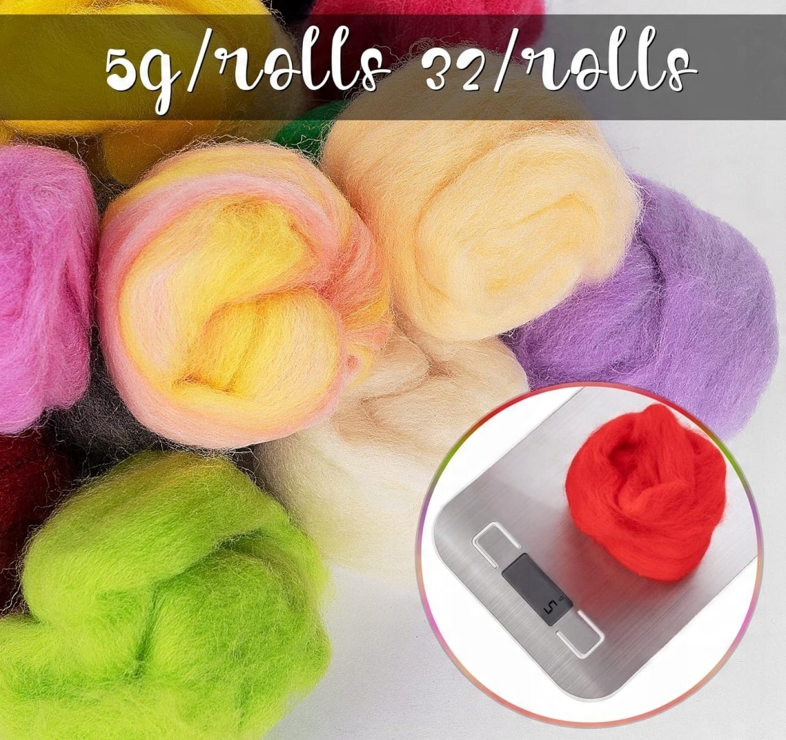 32 шерсти для валяния насыщенных цветов по 5 г каждая, которые можно свободно сочетать, отвечают вашим требованиям DIY, различные стили для сухого валяния и мокрого валяния.
