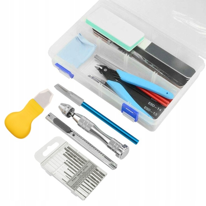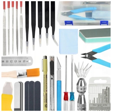 Стартовый набор инструментов и расходных материалов для моделирования — это идеальное решение для людей, которые начинают свое приключение с моделированием. Набор содержит необходимые инструменты, которые облегчат точную сборку и отделку моделей.