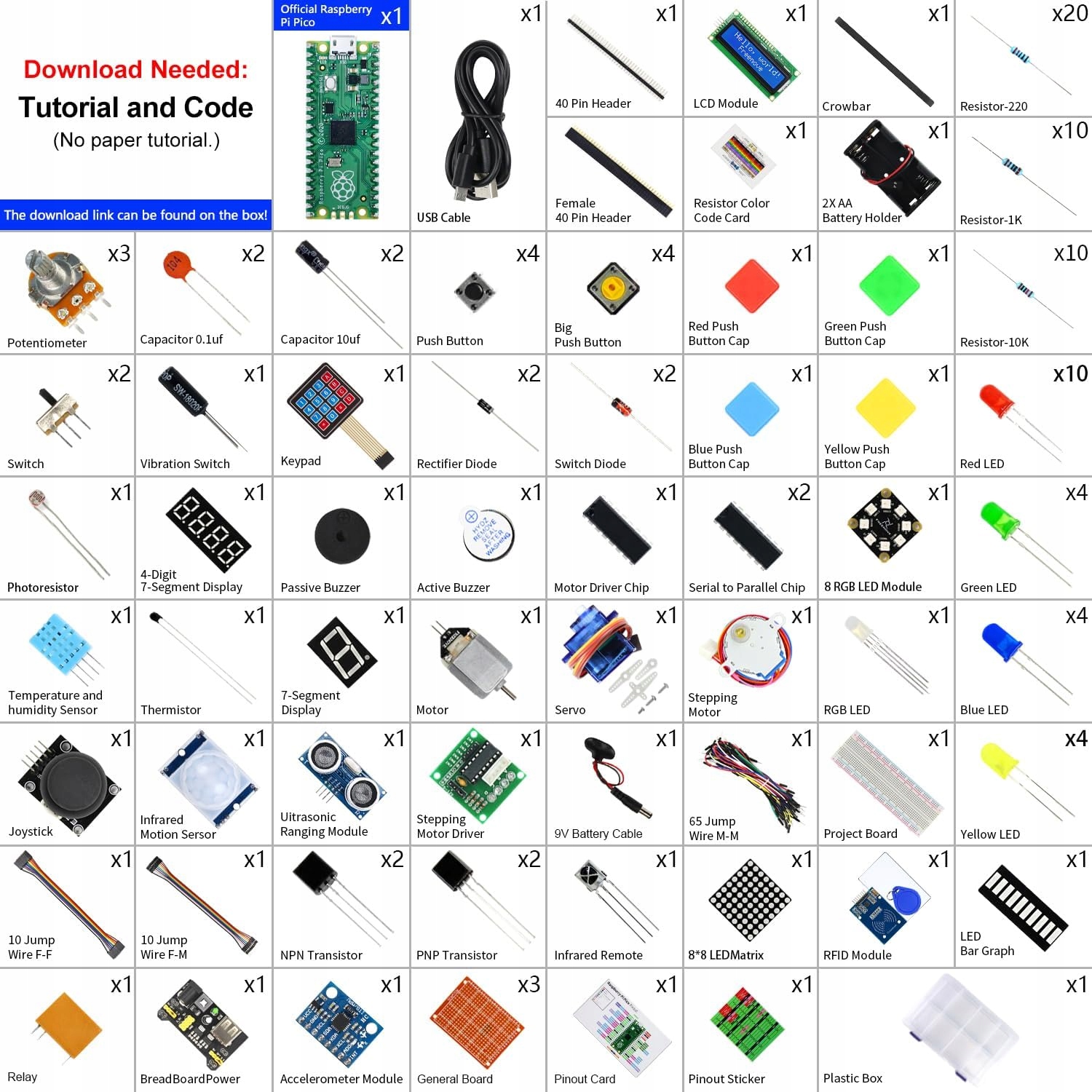 СТАРТОВЫЙ НАБОР RASPBERRY PI PICO 222 КОМПОНЕНТА 112 ПРОЕКТОВ JAVA PYTHON C