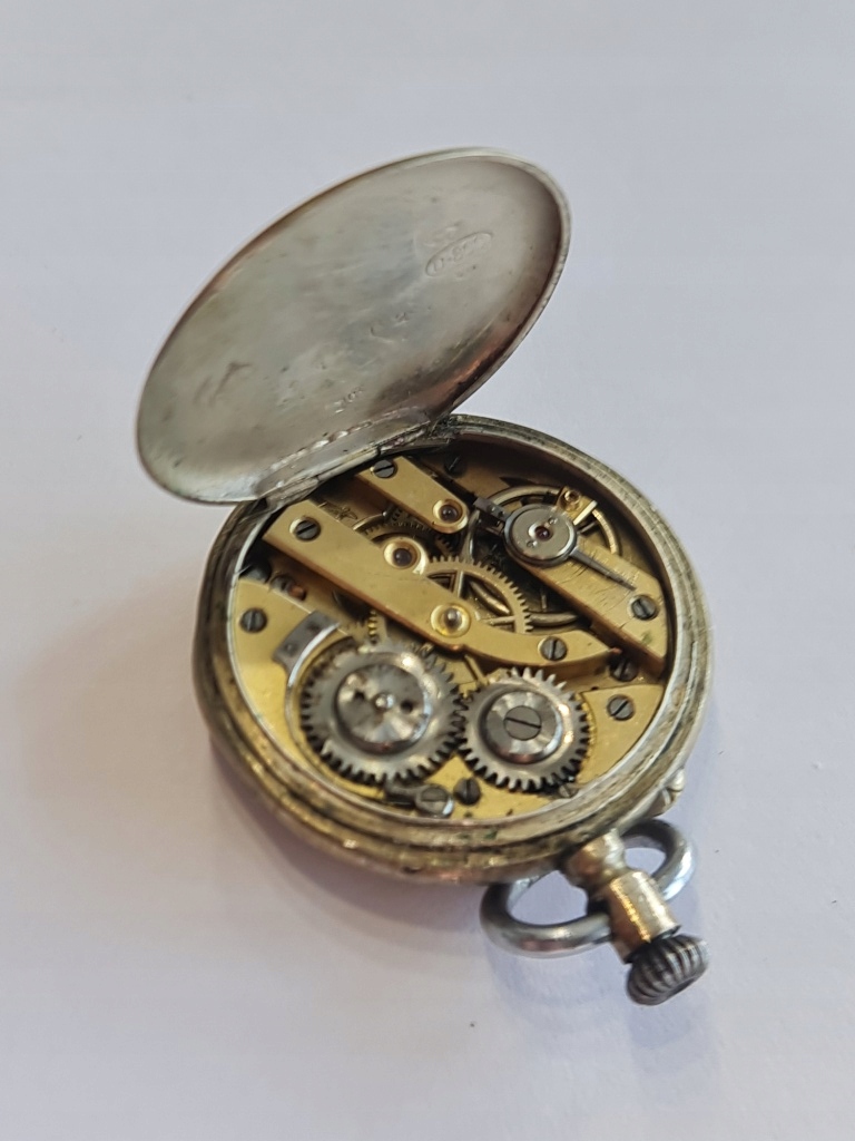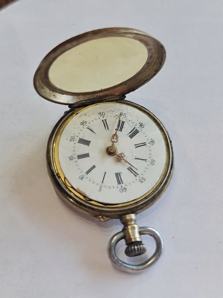 STARY ZEGAREK KIESZONKOWY REMONTOIR CYLINDRE 10 RUBIS SREBRNY 0.800 SPRAWNY